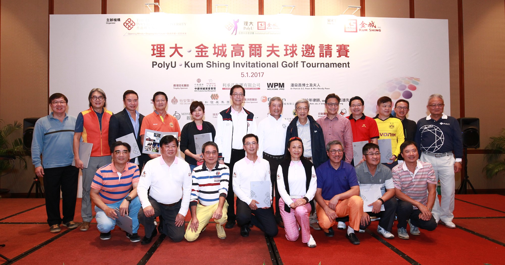 赛事开球礼主礼嘉宾包括:理大校董会主席陈子政先生、校长唐伟章教授、理大基金主席潘燊昌博士、球赛筹委会成员包括:主席及金城营造集团主席兼行政总裁王国强博士工程师;名誉主席兼球赛庆祝晚宴筹委会联席主席吴宏斌博士;其他名誉主席:丁铁翔先生、李远发先生、庄学海先生、叶杰全博士、刘楚彬先生、陆永棠先生及陈国民博士;及委员、球赛庆祝晚宴筹委会联席主席及场地赞助观澜湖集团副主席朱鼎耀先生、香港铁路有限公司主席马时亨教授,以及香港特别行政区全国人民代表大会代表李少光先生。陈主席及唐校长于典礼上致辞时衷心感谢金城营造集团、观澜湖集团、其他赞助单位,以及球赛筹委会的鼎力支持,令活动得以圆满举行。