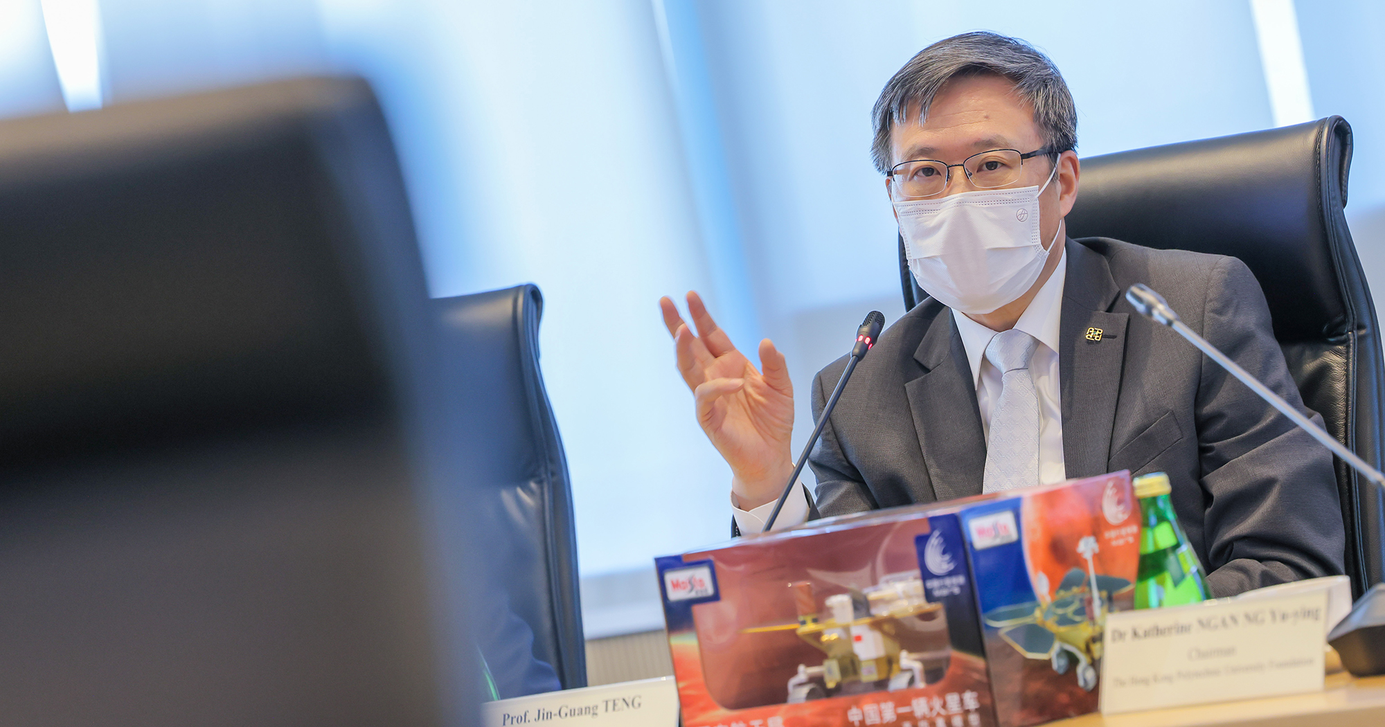 理大校长滕锦光教授与各来宾分享理大于教育及科研方面的最新发展,并分享大学于"2020年研究评审工作"中的多个研究领域均获得高度评价。他并介绍理大八十五周年校庆的其中主题之一为"校友聚首",鼓励大家积极参与庆祝活动。