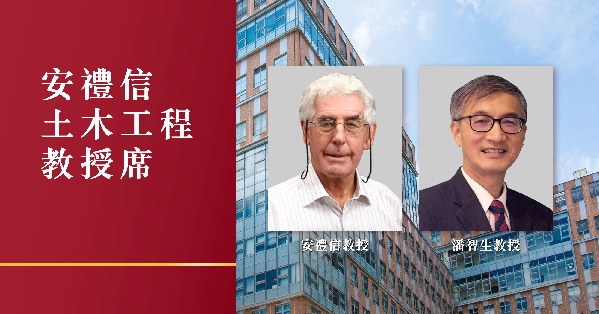 獲委任為「安禮信土木工程教授」的潘智生教授,專門研究將不同廢物循環再造成建築材料的技術,是該領域的專家和先驅。他的教學和研究重點在於環保建築材料、混凝土技術和廢物管理。潘教授是香港工程師學會資深會員,多年來積極服務多個專業團體、政府機構及委員會,建樹豐碩。