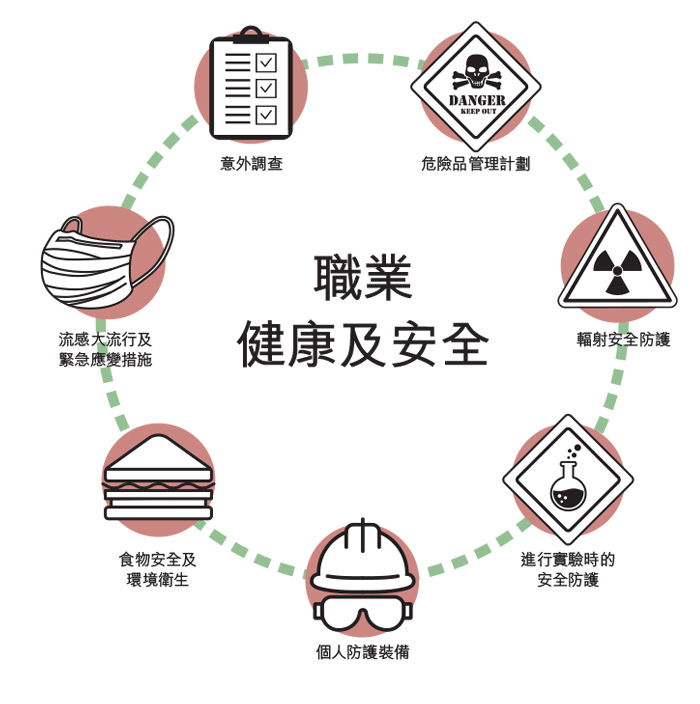 為達致工作場所零意外的目標,理大定期對安全績效進行量度和審計。本校制定健康及安全政策,以保障所有在校園內工作的教職員、學生及公眾人士的健康及安全。健康及安全委員會由副校長(校園發展及設施管理)擔任主席,監督健康及安全政策的施行,並旨在於校內推動安全實務及提升健康及安全意識。理大在職業健康及安全(職安健)的各個範疇均已制定齊全的程序、指引及實務守則。我們就工作環境定期進行檢討及評估,並於報告期內舉辦小組會議及座談會中分享職安健的最新資訊。