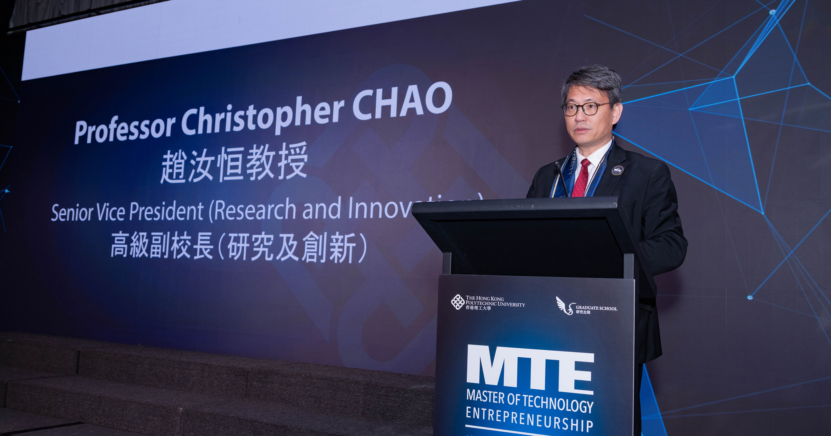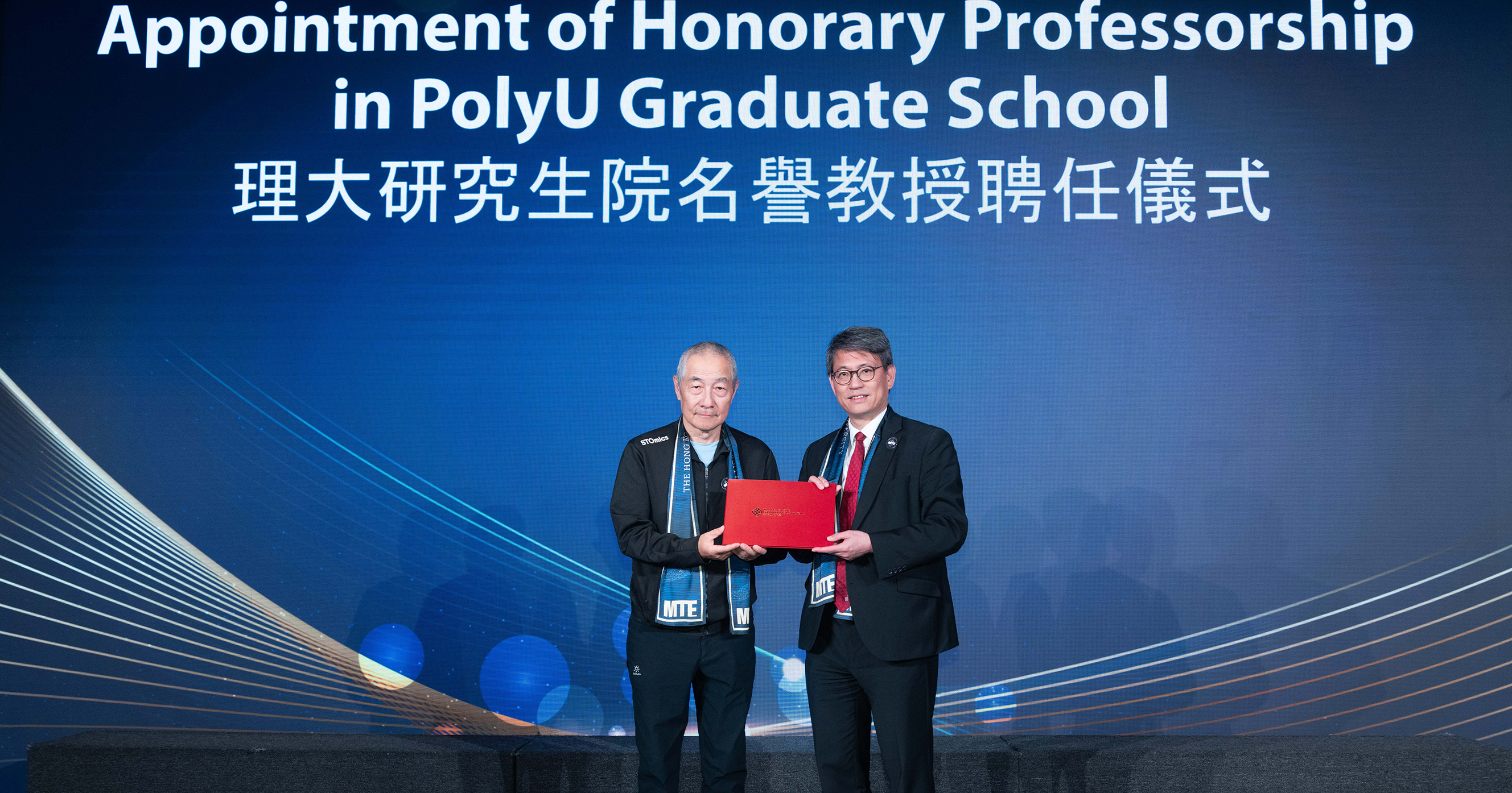 At the ceremony, Prof. Christopher Chao, Senior Vice President (Research and Innovation) of PolyU, encouraged students to embrace exploration and innovation, and to grow through learning and practice, so as to collectively shape a new era of technology entrepreneurship. He also presented Prof. Wang Jian, Co‑founder and Chairman of BGI Group, with an appointment certificate as Honorary Professor of Graduate School.