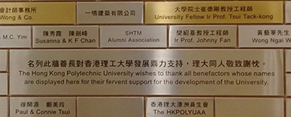 The Alumni Atrium is an ideal facility for alumni activities and networking and an important PolyU initiative to enhance graduates’ sense of belonging. The Alumni Atrium also offers an opportunity for alumni to create a legacy and give back to their alma mater. SHTMAA has donated to show our support in PolyU’s development. To commemorate our support, a SHTMAA nameplate is now displayed inside the Alumni Atrium at Core A of PolyU. |