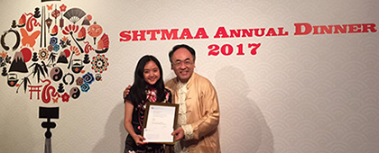 The proposal which had to be submitted for the application of Scholarship this year was an innovative activity for SHTMAA to crossover with another organization. HSU Yung Han (Hannah), a Year 3 student of BSc (Hons) in Tourism Management was awarded a scholarship of HK$5,000, which recognized her creativity and active involvement. The prize presentation was held during the SHTMAA Annual Dinner on 18 March 2017. |