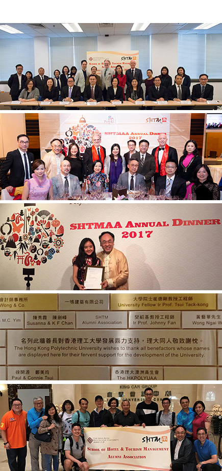 The proposal which had to be submitted for the application of Scholarship this year was an innovative activity for SHTMAA to crossover with another organization. HSU Yung Han (Hannah), a Year 3 student of BSc (Hons) in Tourism Management was awarded a scholarship of HK$5,000, which recognized her creativity and active involvement. The prize presentation was held during the SHTMAA Annual Dinner on 18 March 2017. ......