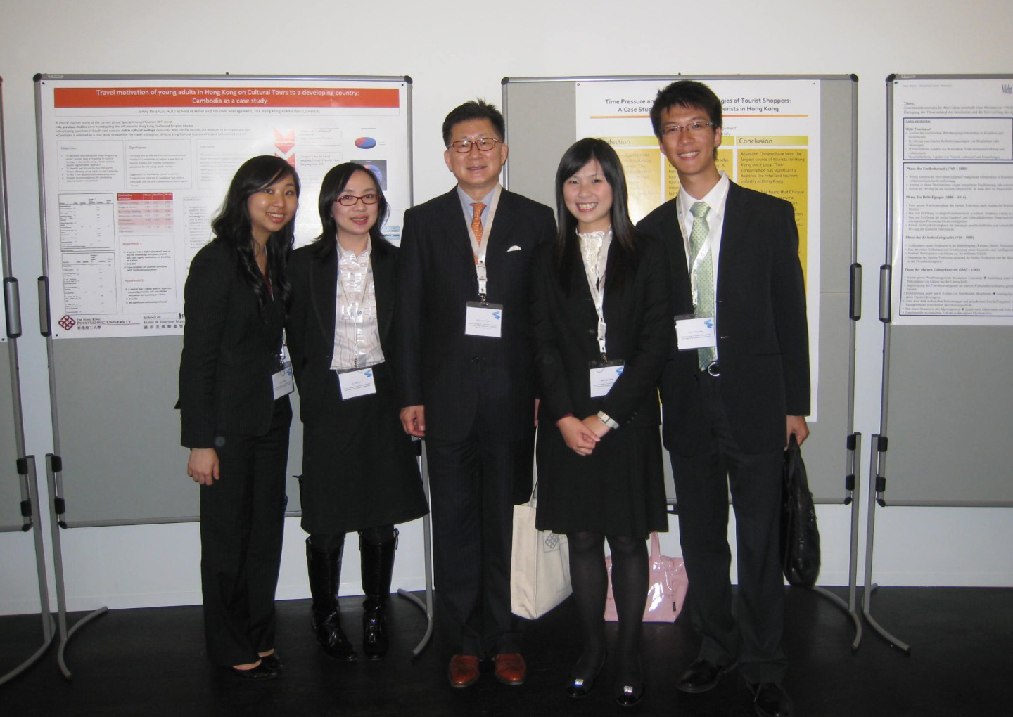 At the 1st World Tourism Forum Lucerne held from 22-24 April in Switzerland, Professor Kaye Chon spoke on the "Future Prospects of Asia's Hotel Industry" in a panel on "Hotel Industry in 2009" and also on "Preparing Students for Future Challenges in the Hospitality and Tourism Industry" in a general session. This was the first forum of its kind to offer industry leaders a global platform from which to discuss the current economic crisis, climate change and the serious challenges that the tourism industry will no doubt face in future. Four SHTM students presented papers that won first, third, fourth and fifth place in an open competition, they were: - 1st place – "The Impacts of Low-Cost Carriers' Entry on International Tourism Demand" by Mr Tuen Chun Tung, Henry
