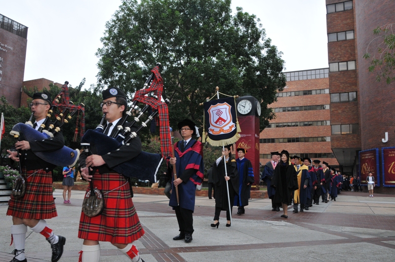 Both the morning and afternoon sessions began with bagpipers in full Scottish dress leading a parade of students and staff in their academic robes across the PolyU campus to the Auditorium.