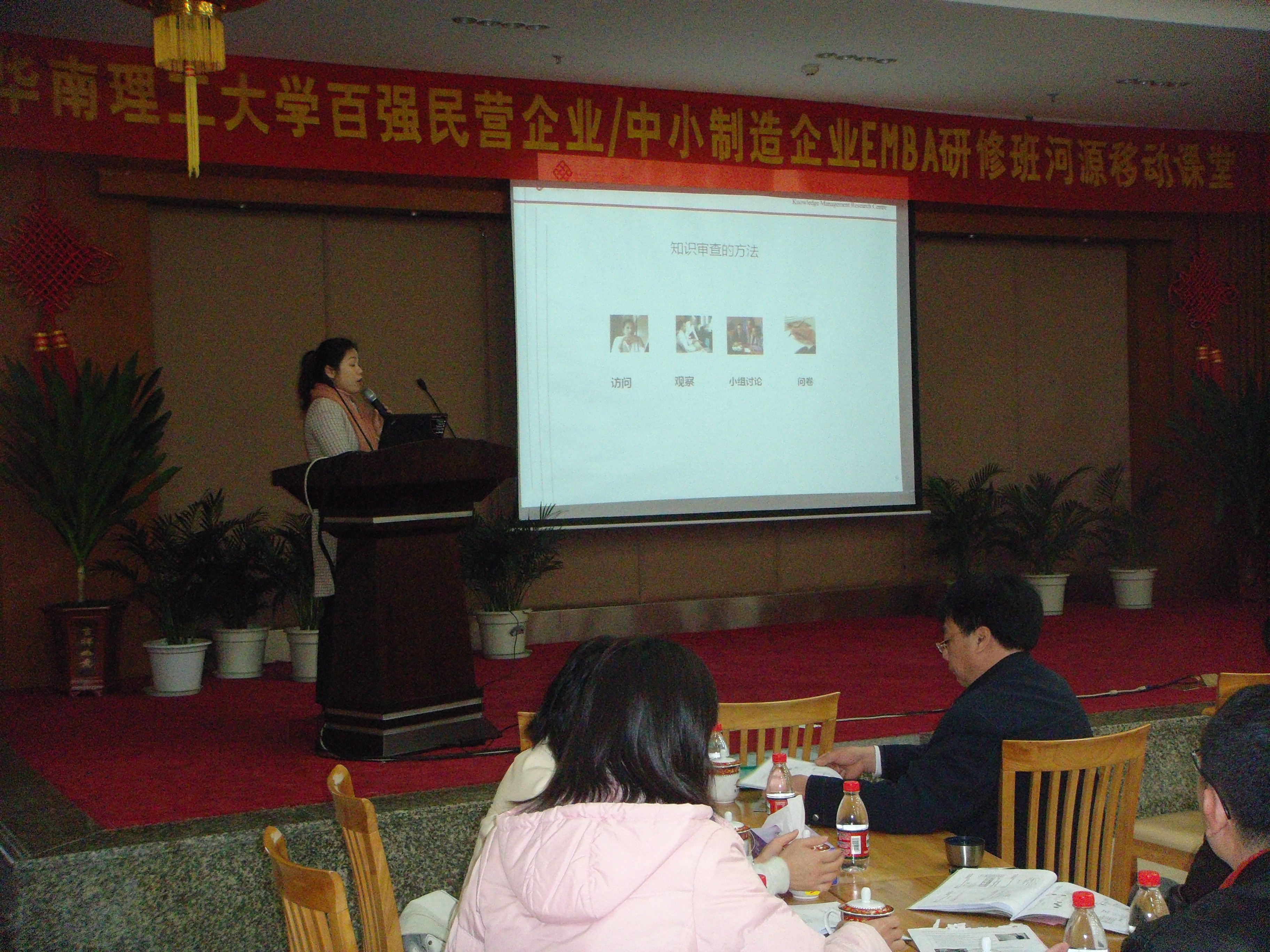 KMRC was invited to conduct a 2-day KM training for the participants of the EMBA program from SCUT at Heyuan, Guangdong, on 19th and 20th Dec 2009. During the two half-day training program, Prof. WB Lee and Ms. Nicole Sy introduced the concepts of Knowledge Management, Knowledge Management tools and Strategic Planning, Intellectual Capitals, and Action Science to the participants who are the representatives of the Hundred Leading Enterprise from all over Guangdong. At the end of the training, participants also discussed how to implement KM in the Chinese enterprises.