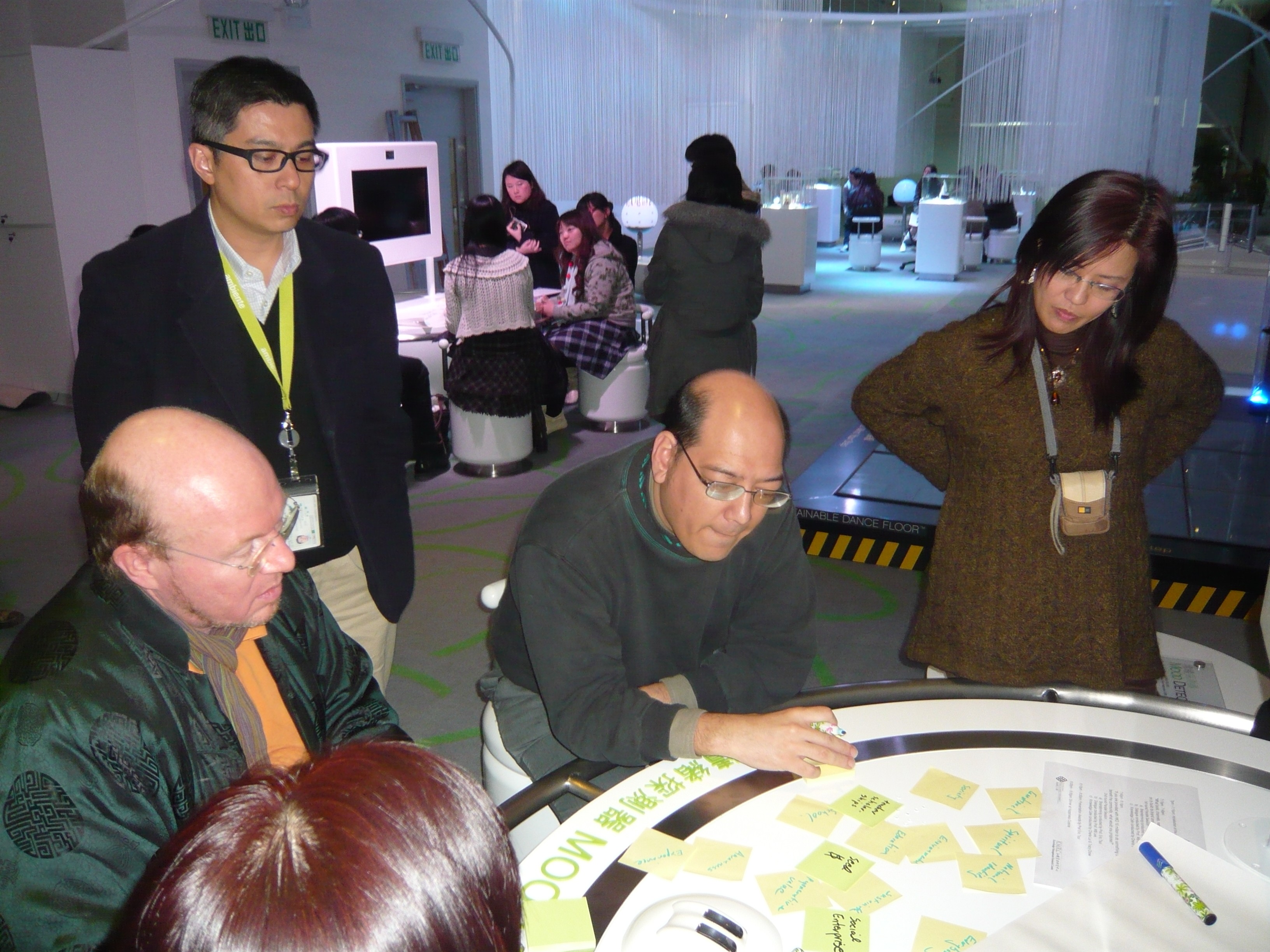 Social Networking Event 2009 Social Networking Event for MSc KM Participants was held at the Technology Universe of the Hong Kong Science and Technology Parks (HKSTP) on 21 Dec. Prof. WB Lee introduced the concepts of 'Future Centre'. Sessions of 'Brainstorming', 'Dialogue' and 'Knowledge Cafe' were conducted to facilitate the generation of new ideas under the atmosphere of the Technology Universe. During the event, MSc KM Scholarships 2009 were also presented to Andreas Sher, William Proudfit and Chan Sau Ting by Prof. Eric Tsui.