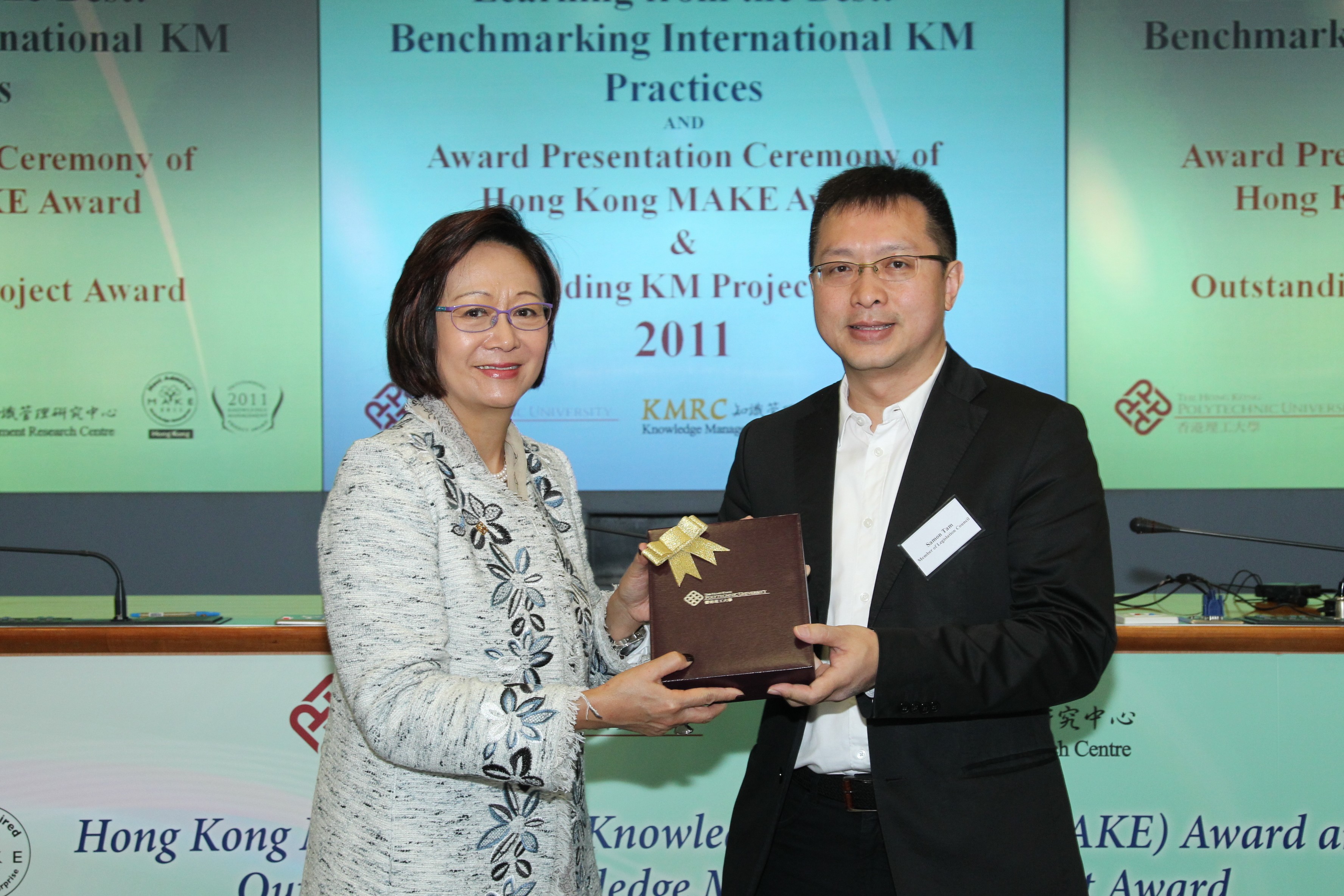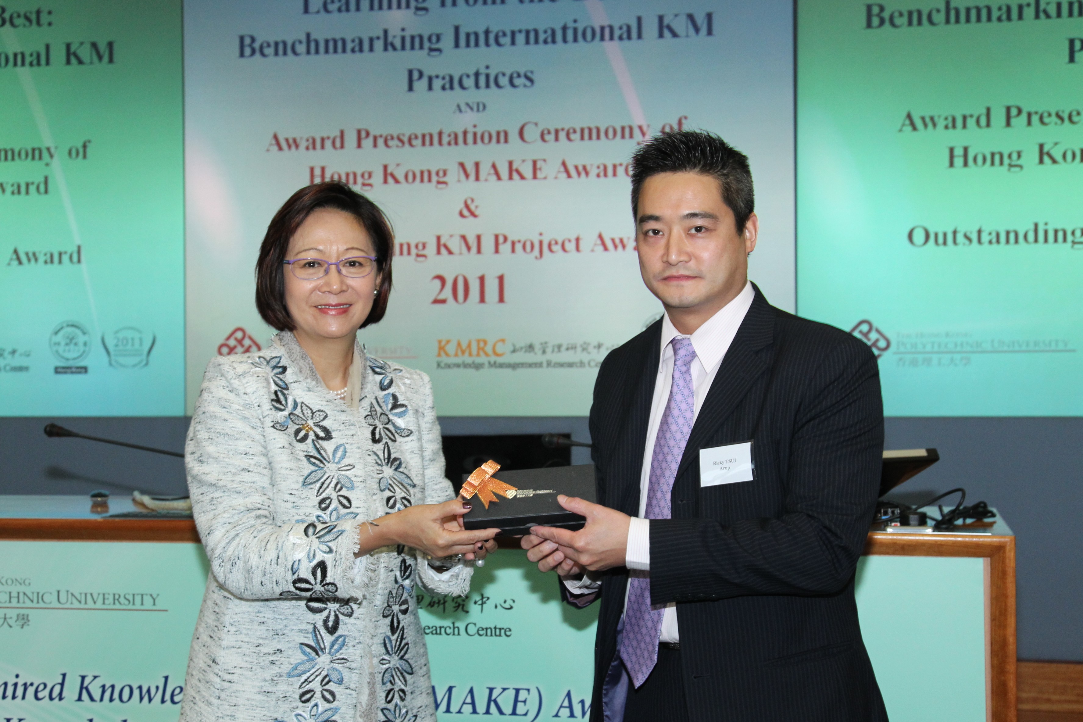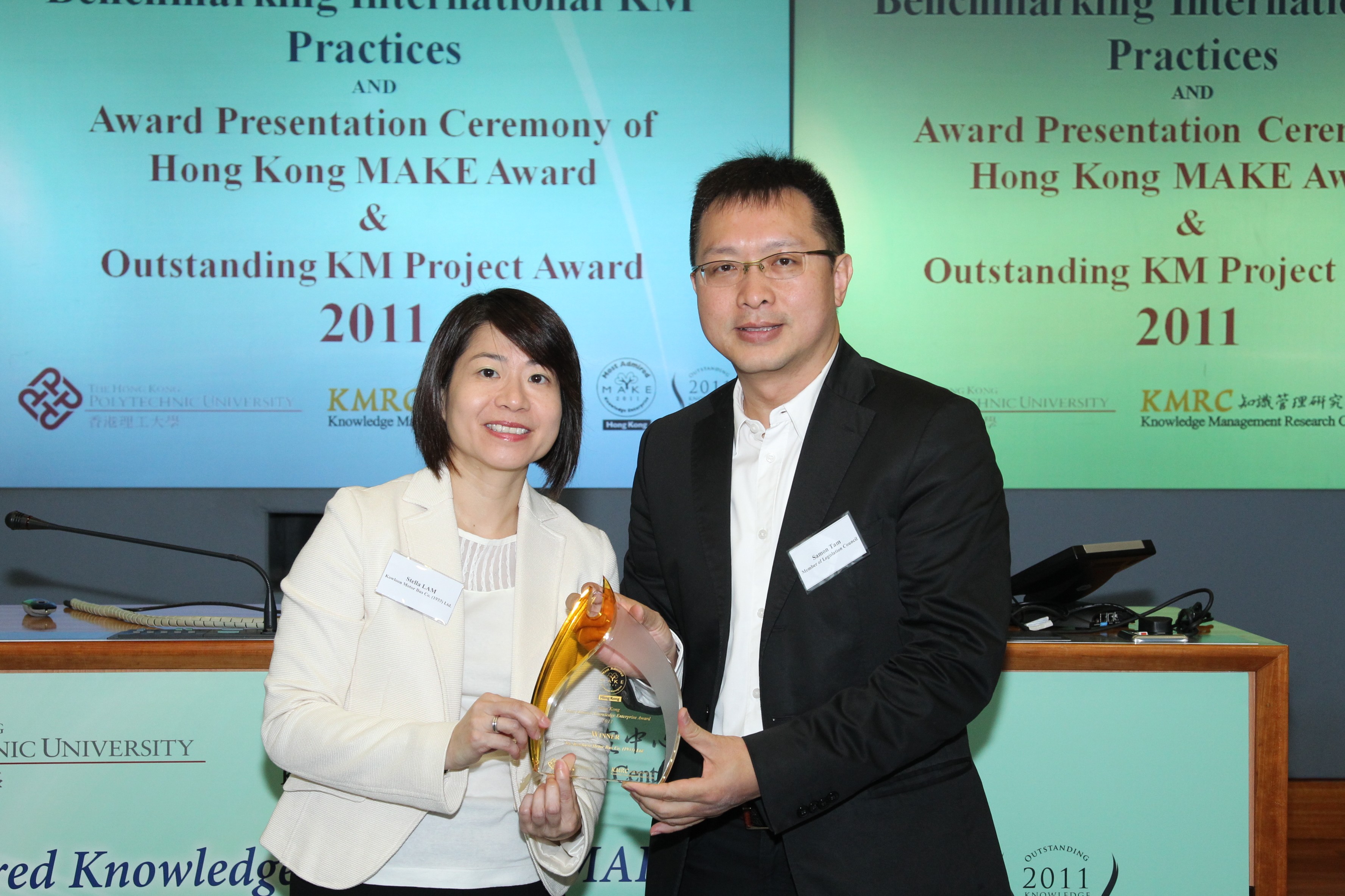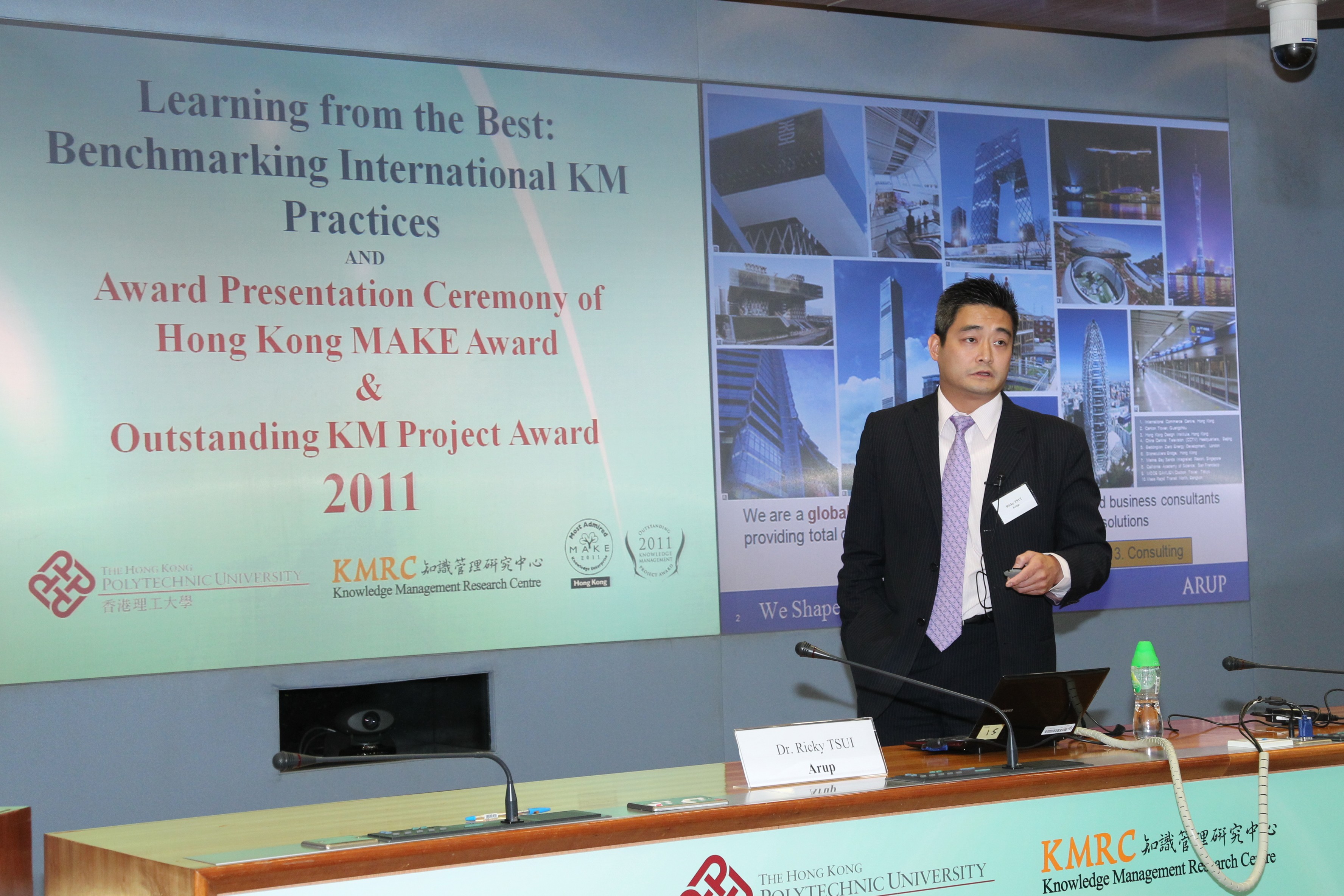 The Hong Kong Most Admired Knowledge Enterprise (MAKE) Award organized by the Knowledge Management Research Centre (KMRC) has come to its fourth year. This year, alongside the award presentation ceremony, a Forum on “Learning from the Best: Benchmarking International KM Practices” was also held on 8 November 2011 at PolyU. For the first time, winners of the Most Admired Knowledge Enterprise (MAKE) Award from Mainland China together with the Hong Kong MAKE winners shared their stories on how they cultivate and utilize the knowledge and intangibles of their staff and stakeholders for the creation of new products and services as well as how to enhance their performance through concerted effort of their employees. The event is well received with over 100 attendees. It ended with a networking session in which all participants enjoyed a wonderful time to discuss and exchange ideas with award recipients.