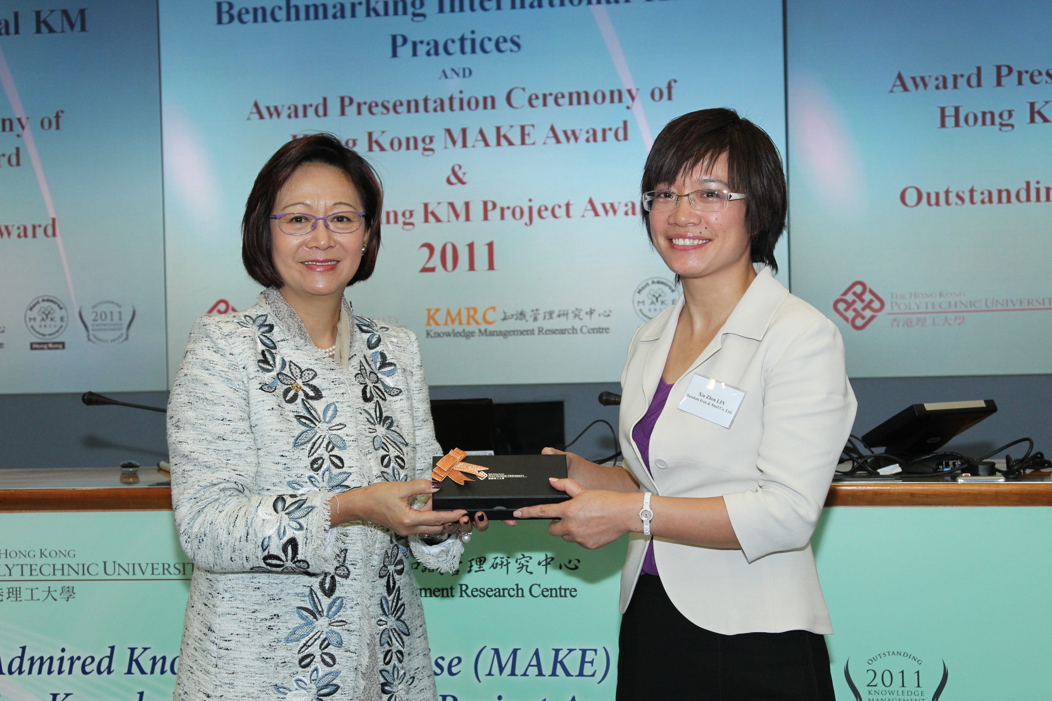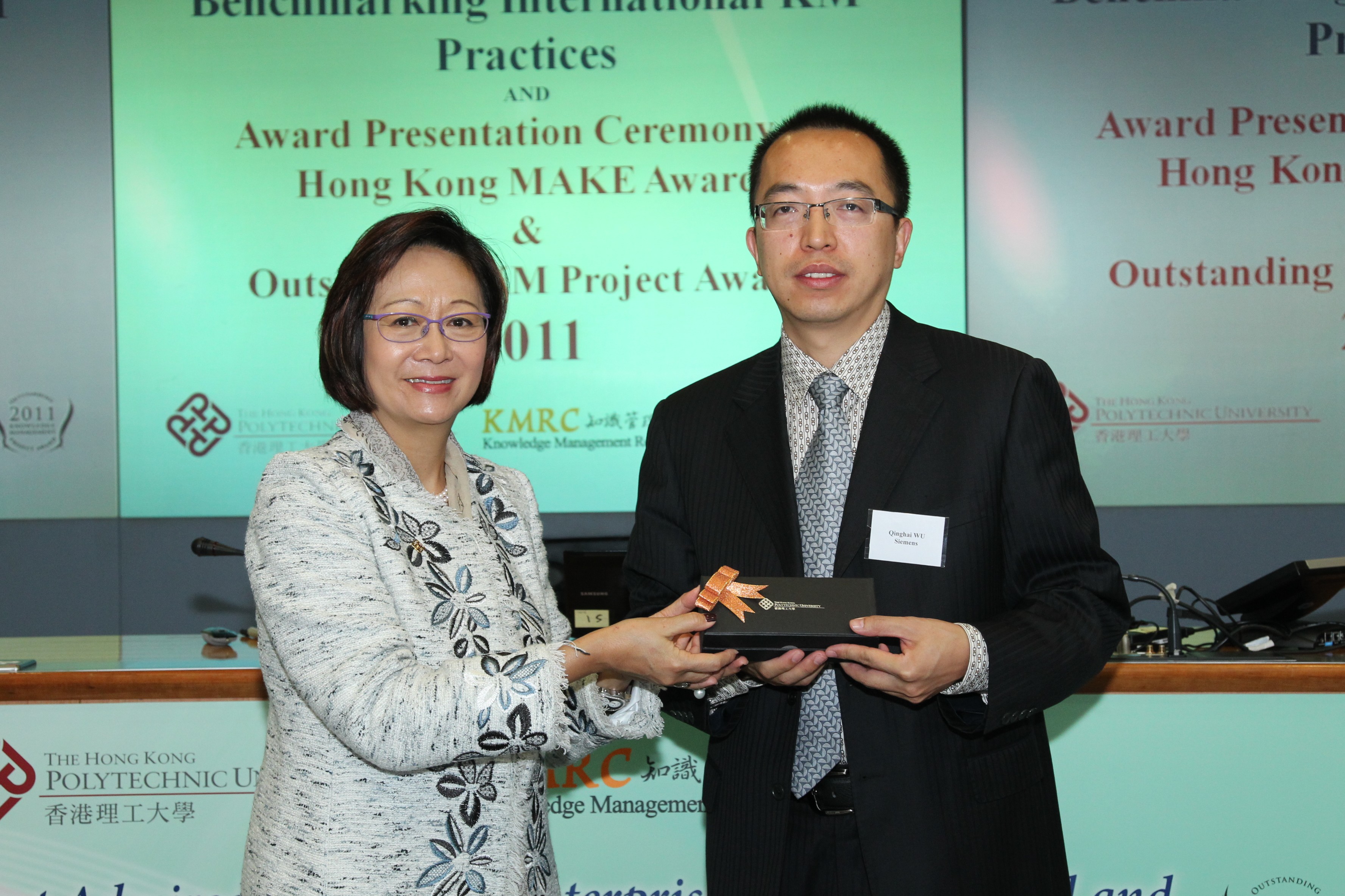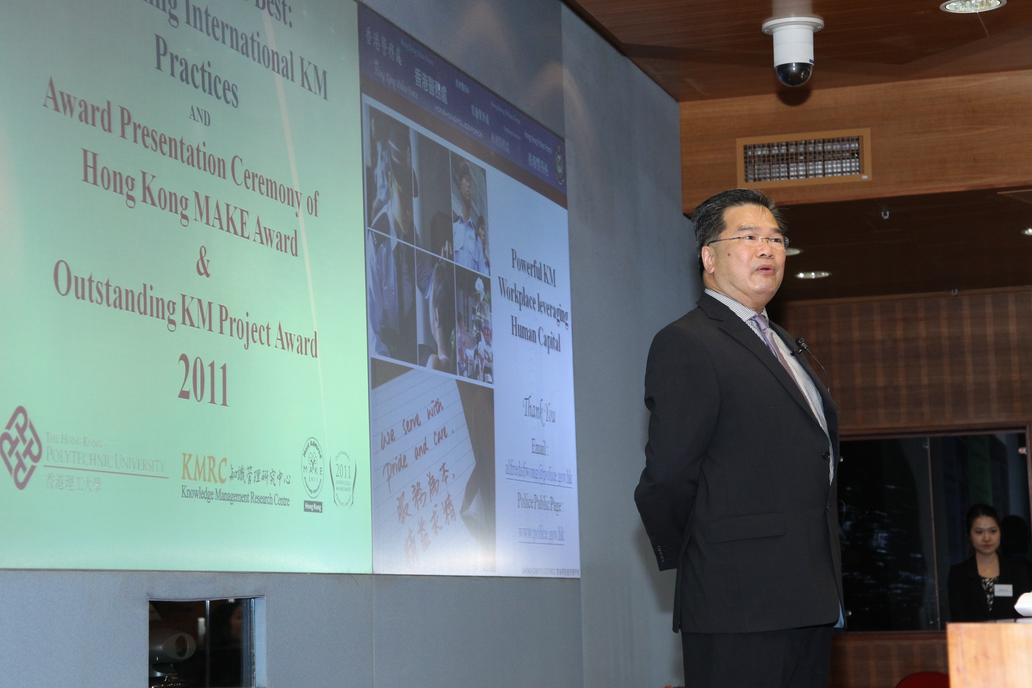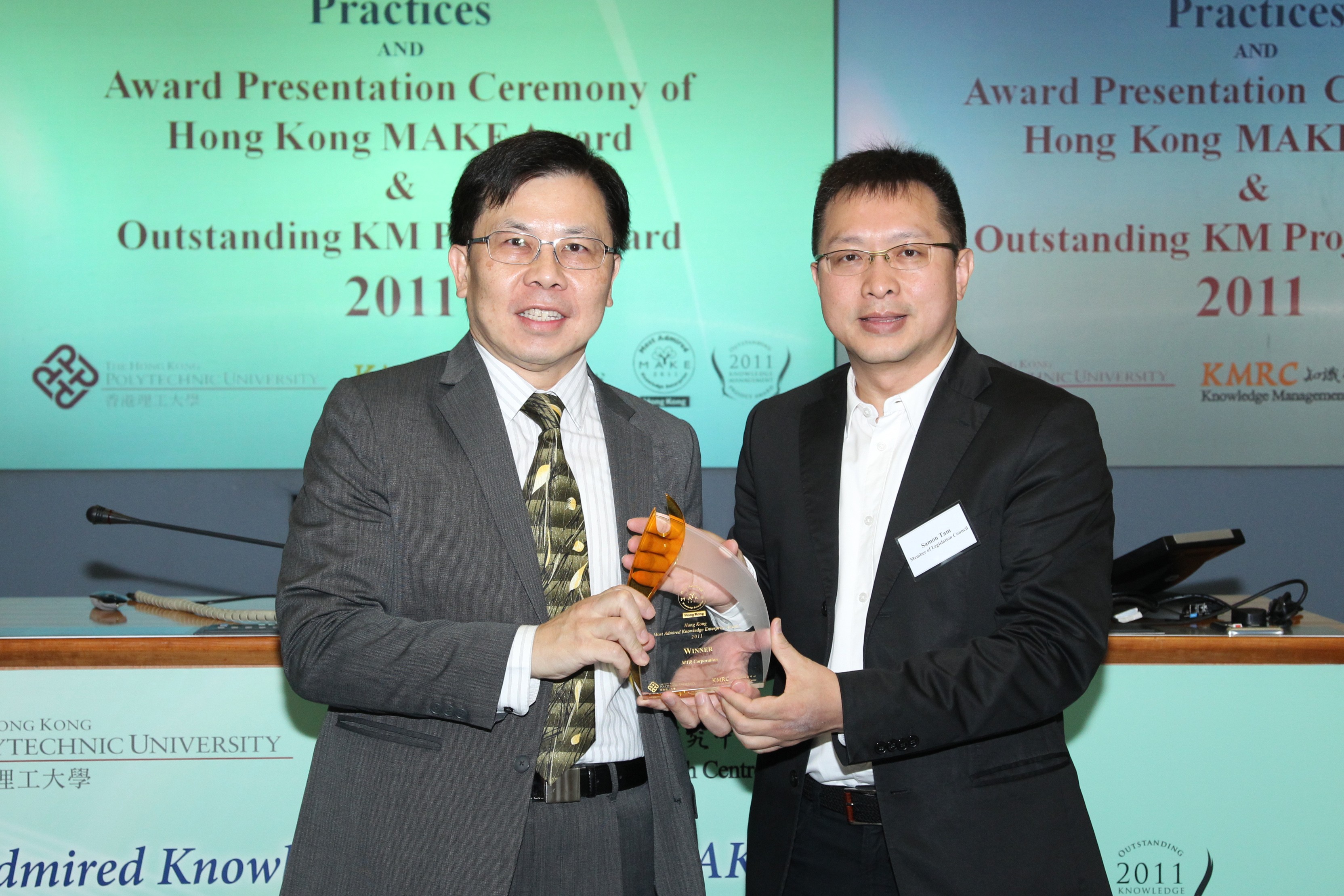 The Hong Kong Most Admired Knowledge Enterprise (MAKE) Award organized by the Knowledge Management Research Centre (KMRC) has come to its fourth year. This year, alongside the award presentation ceremony, a Forum on “Learning from the Best: Benchmarking International KM Practices” was also held on 8 November 2011 at PolyU. For the first time, winners of the Most Admired Knowledge Enterprise (MAKE) Award from Mainland China together with the Hong Kong MAKE winners shared their stories on how they cultivate and utilize the knowledge and intangibles of their staff and stakeholders for the creation of new products and services as well as how to enhance their performance through concerted effort of their employees. The event is well received with over 100 attendees. It ended with a networking session in which all participants enjoyed a wonderful time to discuss and exchange ideas with award recipients.