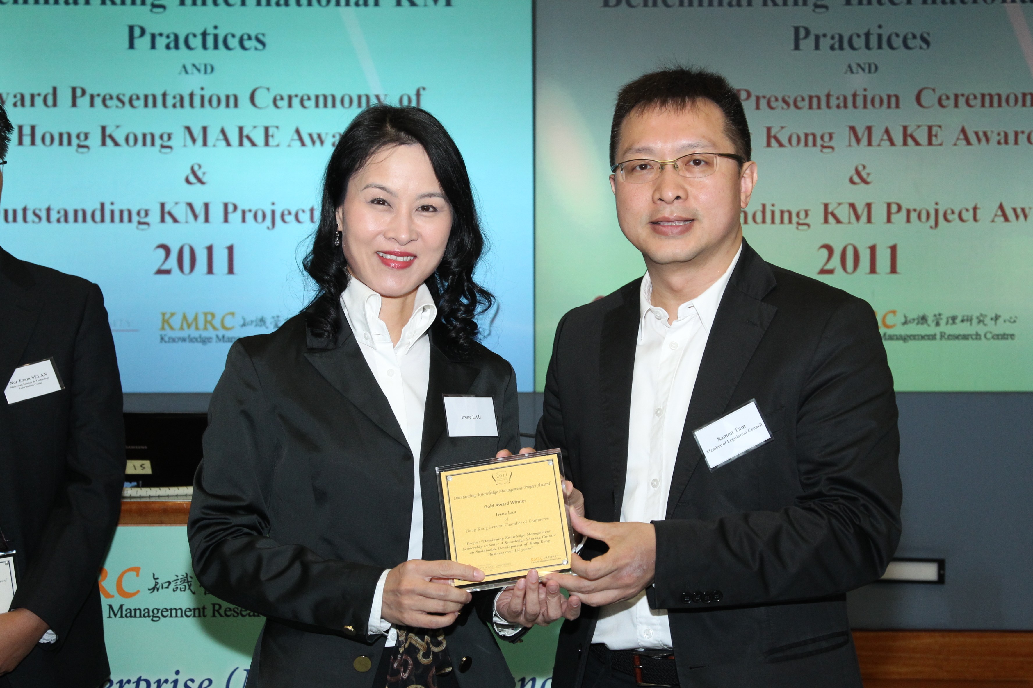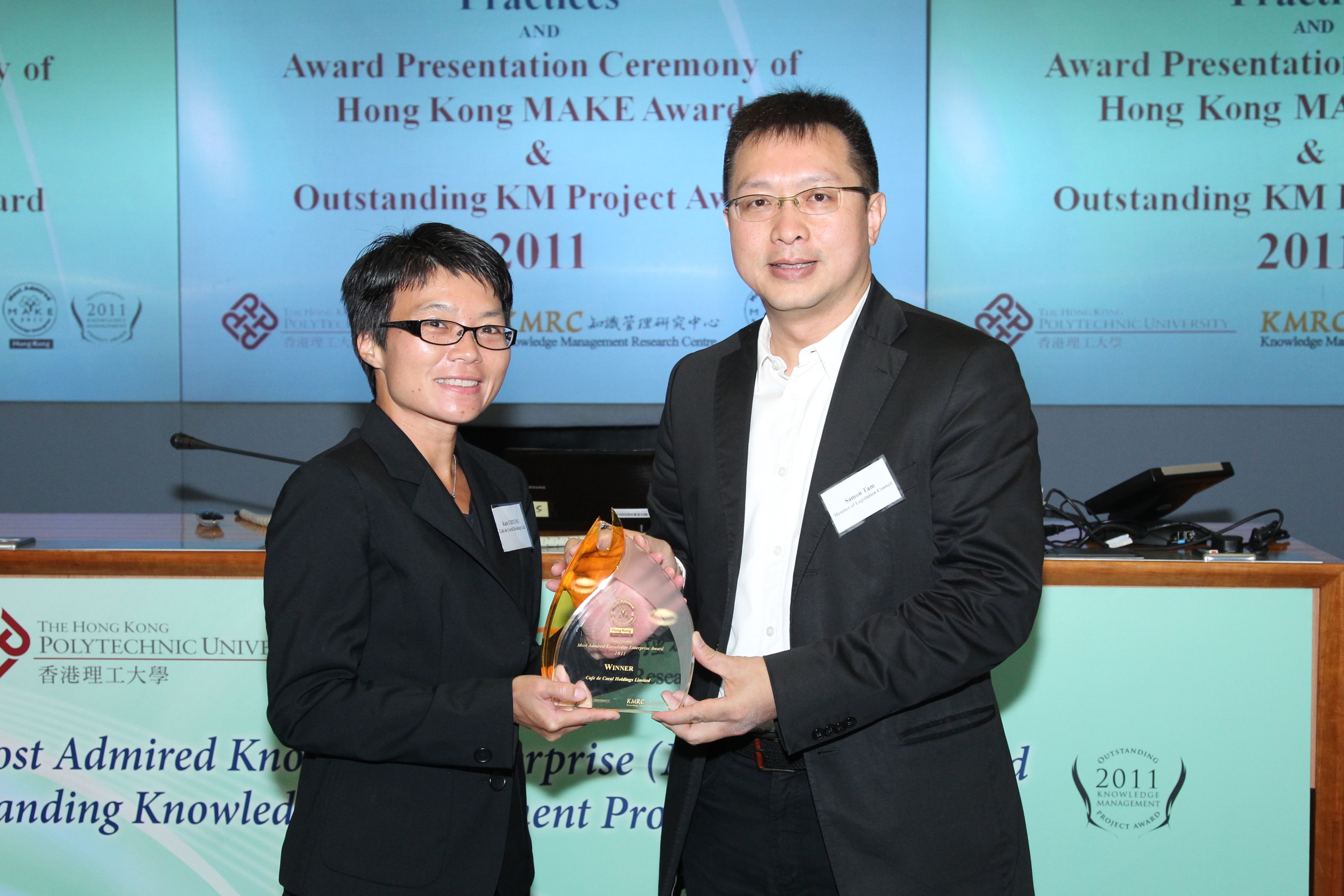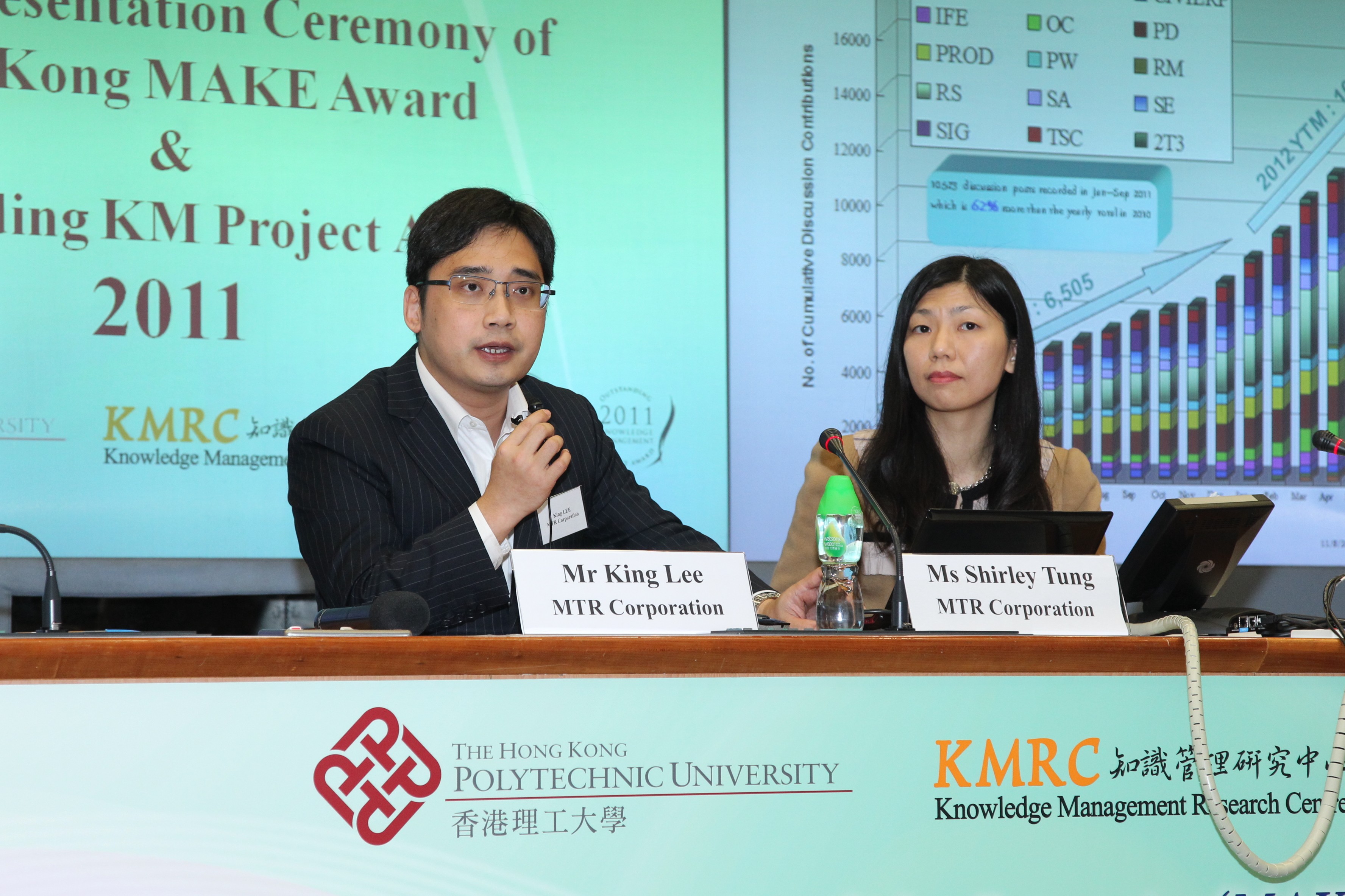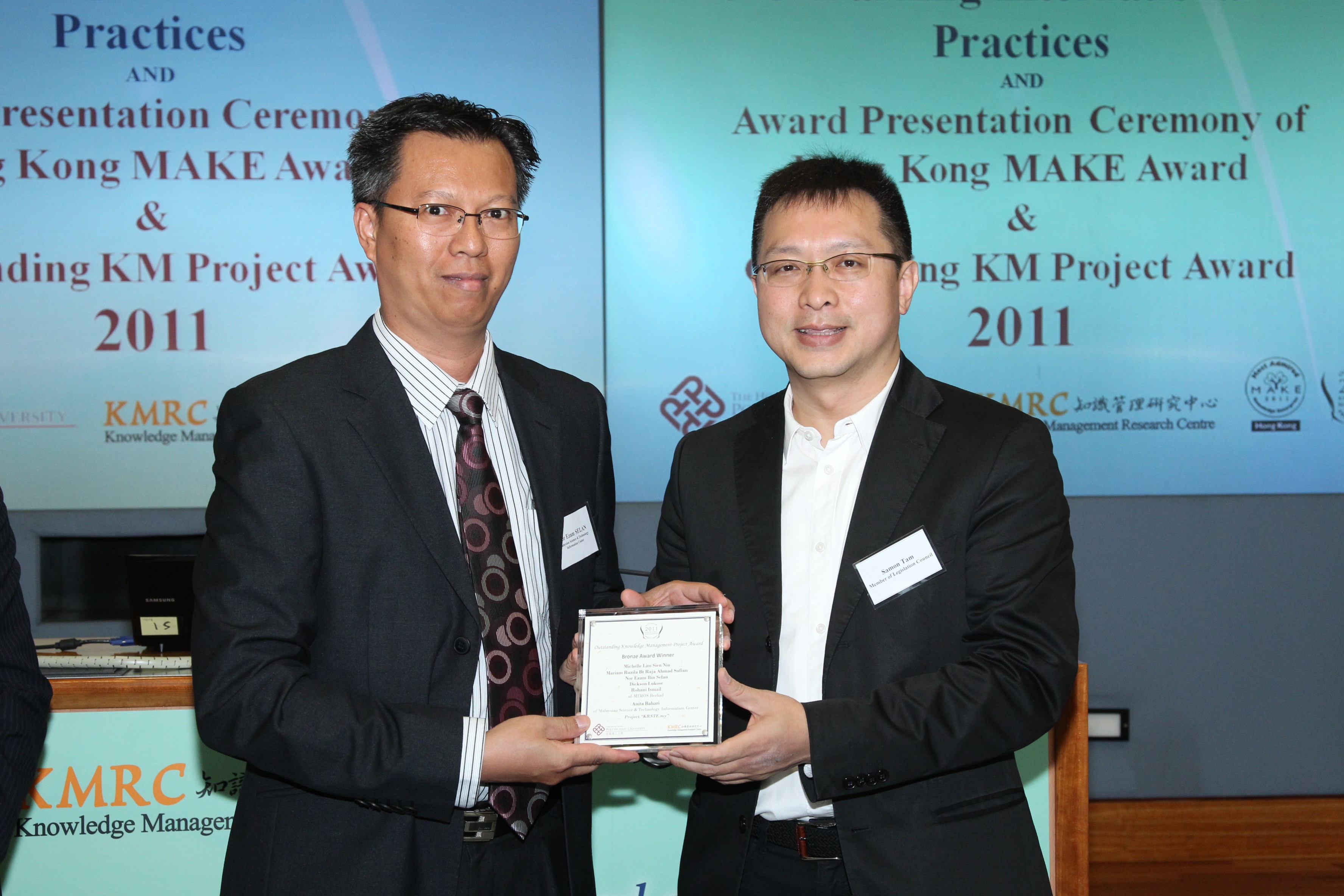 The Hong Kong Most Admired Knowledge Enterprise (MAKE) Award organized by the Knowledge Management Research Centre (KMRC) has come to its fourth year. This year, alongside the award presentation ceremony, a Forum on “Learning from the Best: Benchmarking International KM Practices” was also held on 8 November 2011 at PolyU. For the first time, winners of the Most Admired Knowledge Enterprise (MAKE) Award from Mainland China together with the Hong Kong MAKE winners shared their stories on how they cultivate and utilize the knowledge and intangibles of their staff and stakeholders for the creation of new products and services as well as how to enhance their performance through concerted effort of their employees. The event is well received with over 100 attendees. It ended with a networking session in which all participants enjoyed a wonderful time to discuss and exchange ideas with award recipients.