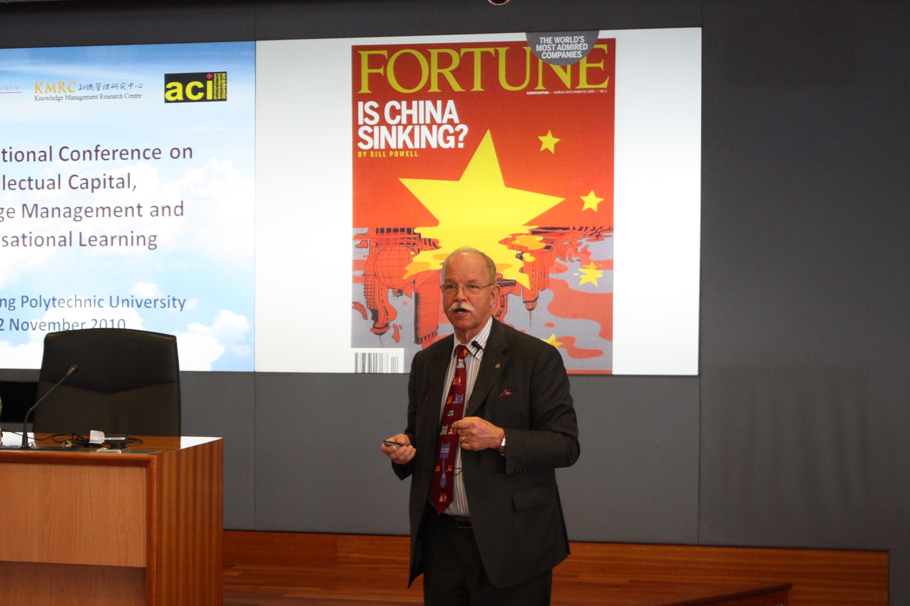 Prof. Walter Yuen, Vice President of PolyU welcomed the delegates and briefed them with the latest development of PolyU. An opening speech on “Rising Intellectual Capital in China - What causes the Phenomenological Economic Potential and Growth” was delivered by the Chairman of the New Club of Paris, Prof. Leif Edvinsson. Another keynote speaker was Mr. Stephen Selby, Director of the Intellectual Property Department of the HKSAR Government who shared with the audience the success of an intellectual capital management programme launched in Hong Kong. Alongside with the conferences was several PhD colloquium in which doctorate candidates present their latest findings with constructive comments from the academics.