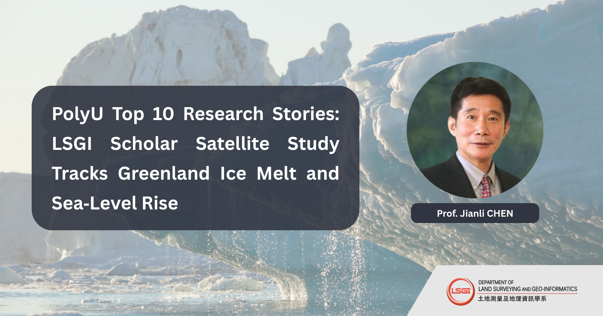We are thrilled to announce that Prof. Jianli CHEN, Chair Professor of Space Geodesy and Earth Sciences (LSGI), has been named one of the winners of the inaugural “PolyU Top 10 Research & Innovation Stories of the Year”.