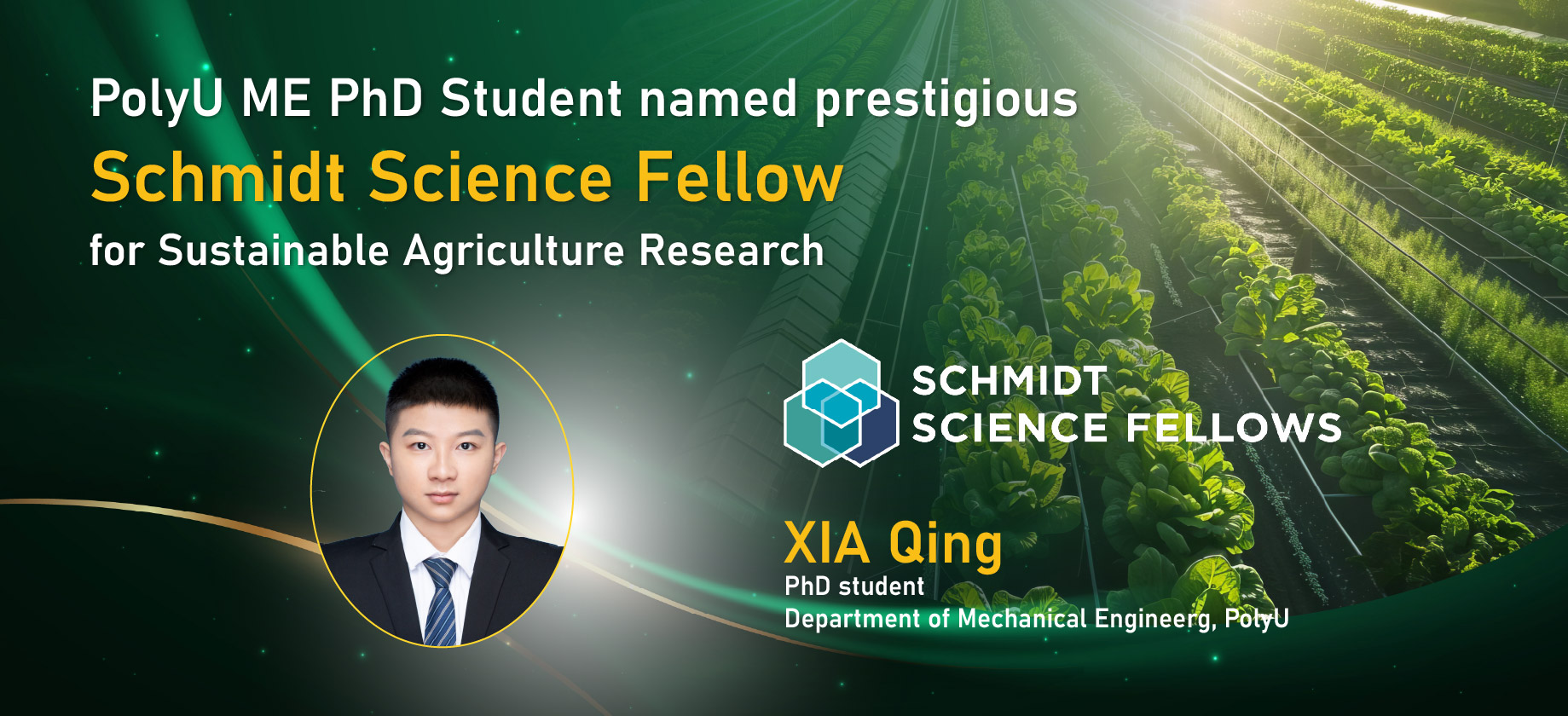 Congratulations to Mr XIA Qing, a PhD student in the Department of Mechanical Engineering, has been selected as a 2026 Schmidt Science Fellow — the first ever PolyU student, and only student from Hong Kong this year to receive this prestigious honour. With only about 30 fellows selected each year from hundreds of nominees worldwide, this achievement represents exceptional calibre and distinction.