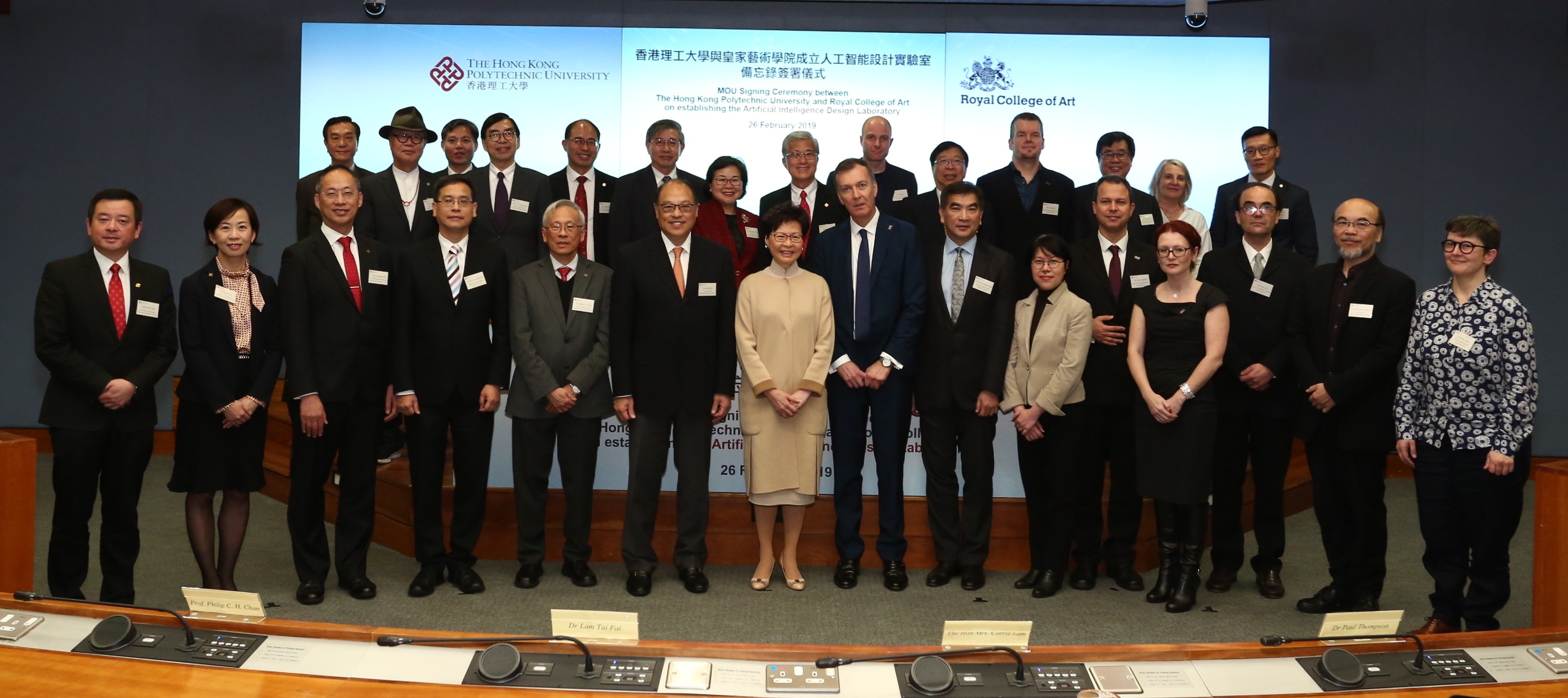Addressing in the ceremony, The Hon Mrs Carrie Lam, said, “The opportunity to witness this marriage of design and AI which belongs to the technology portfolio is extremely gratifying. I am sure that the collaborated team of PolyU and RCA will find in Hong Kong the appeal of time-tested legal system, robust intellectual property protection, strong financial sector, and the support for commercialisation of R and D results, as well as the distinctive east meets west culture which sparks creative inspiration.”