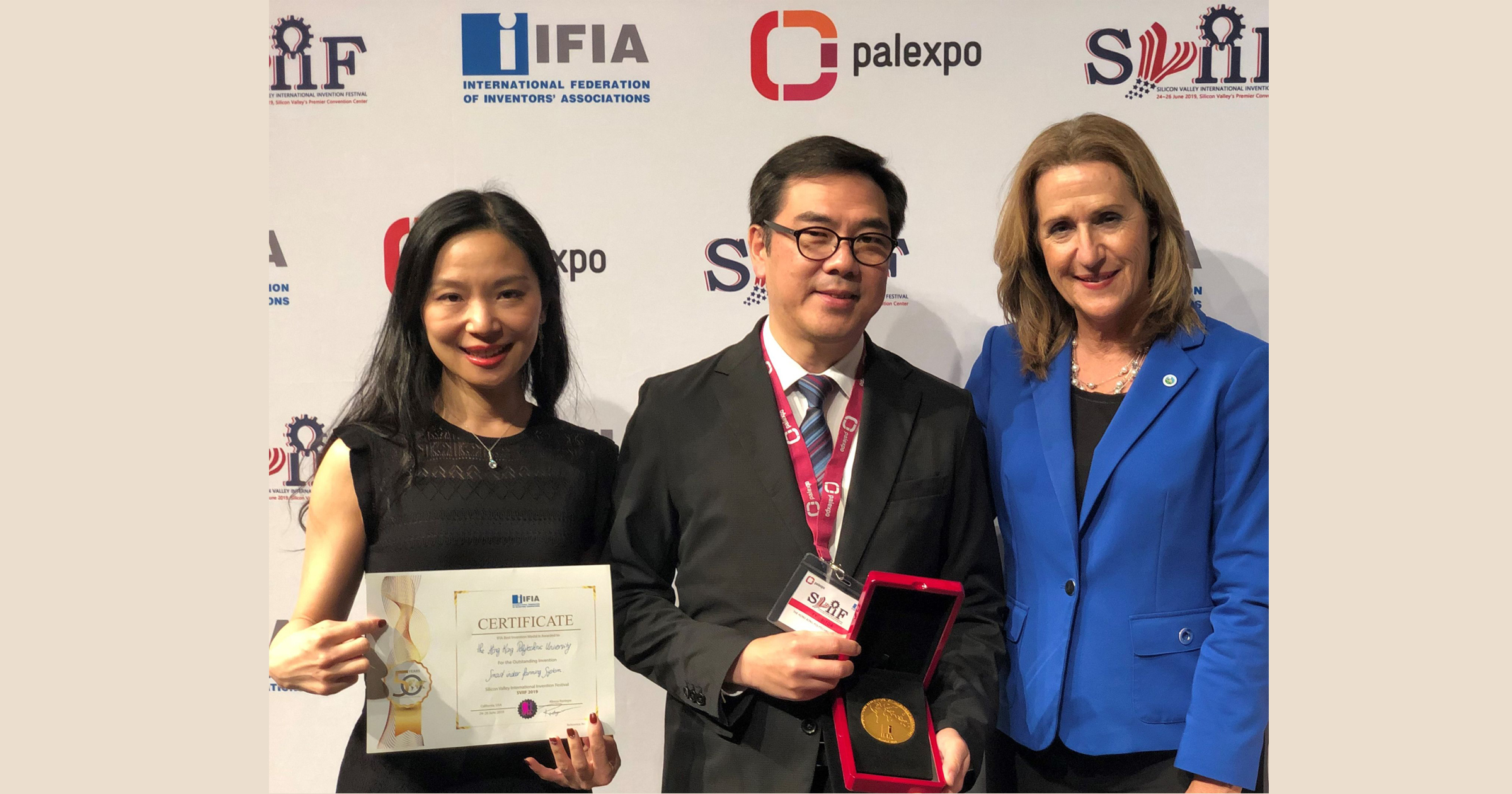 The Hong Kong Polytechnic University (PolyU) garnered four prizes with two outstanding innovations at theSilicon Valley International Invention Festival (SVIIF) 2019. Its Smart Indoor Farming System won aGrand Award and a Gold Medal with the Congratulations of the Jury, while its Flexible Scoliotic Brace with Shape Memory Alloy Struts won a Gold Medal and a Special Merit Award, at SVIIF held in Santa Clara, California, the United States from 24 to 26 June.