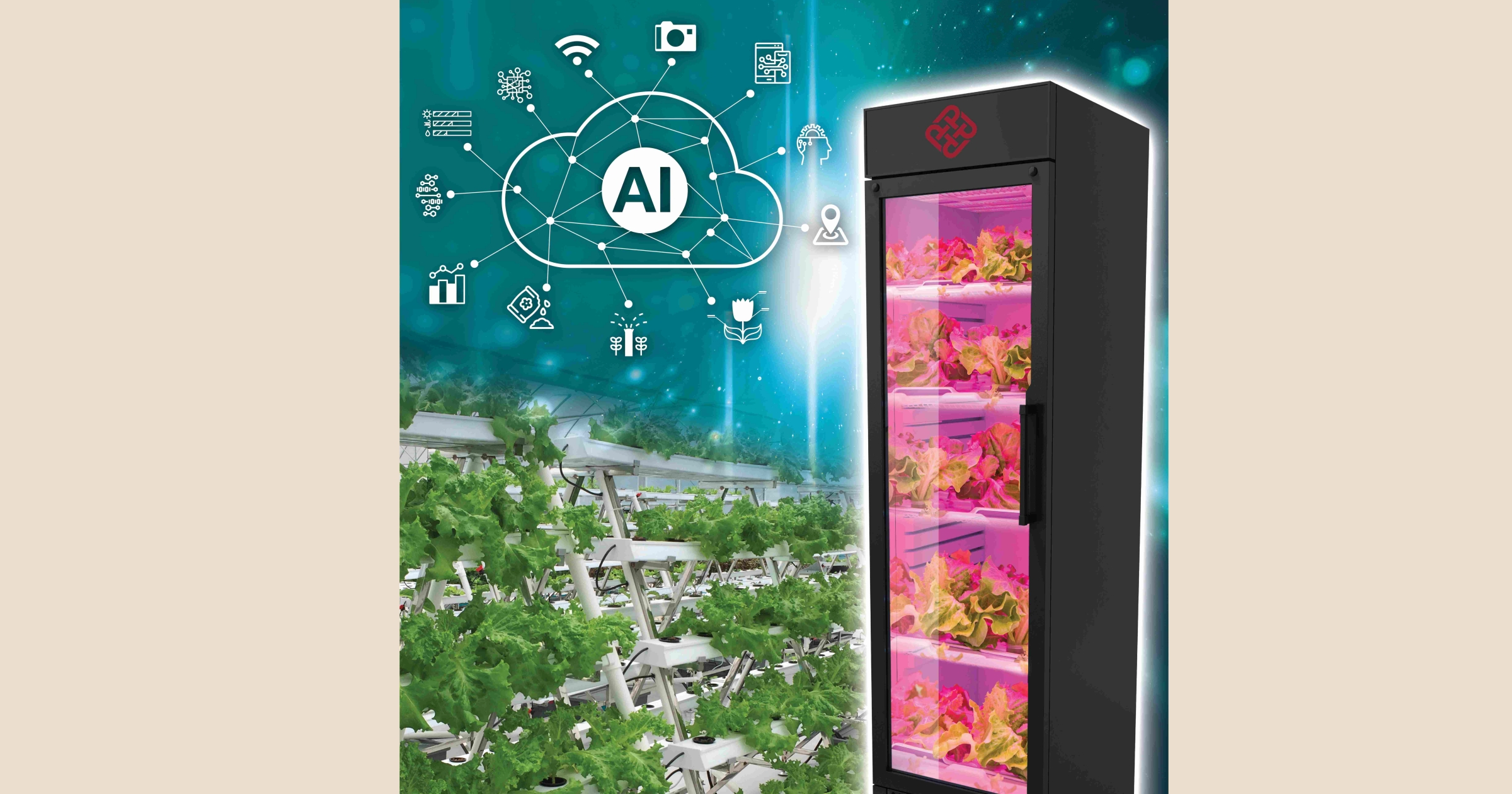 Applying Artificial Intelligence-based and data-driven technologies, the system can generate photosynthetic-active-radiation lighting, watering and nutrient supply programmes which are optimised for the growth of individual plant types. The system adopts advanced sensing technologies to collect real-time data for the plant growth and environmental data from growth chambers and farms using the system. By comparing the data collected with the growth profiles of different plant types, optimal sets of growth control parameters can be constructed and fed back to the user's system. The system will then automatically supply the optimal tailor-made essentials, such as light, water, temperature, nutrients, to enhance the growth performance of individual plants.Study shows that the growth cycle of Italian lettuce has been shortened by about 50% with the support of this system. Water consumption can also be substantially reduced to only 5% of that in conventional farming.