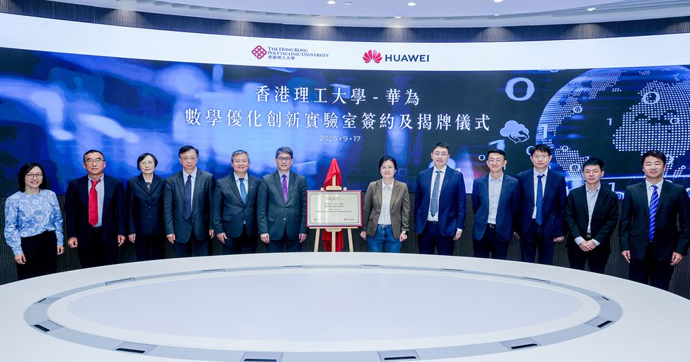 The Hong Kong Polytechnic University (PolyU) and Huawei Technologies Co., Ltd. (Huawei) signed a collaboration agreement on 17 September 2025 to officially launch the PolyU–Huawei Mathematical Optimization Innovation Laboratory (MOI) at PolyU. As the first joint laboratory of Huawei in Hong Kong focusing on developing XPU-based advanced optimization solver, the MOI marks a significant milestone in the institutions’ long-standing partnership, which began in 2007 and has fostered collaboration across communications, big data, algorithms, and materials science.