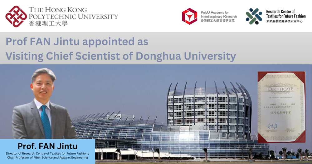 Prof FAN Jintu, Director of the Research Centre of Textiles for Future Fashion (RCTFF) and Chair Professor of Fiber Science and Apparel Engineering, was appointed as Visiting Chief Scientist of the Shanghai International Fashion Innovation Centre (SIFIC), Donghua University for a period of three years, from 1 June 2023 to 31 May 2026.