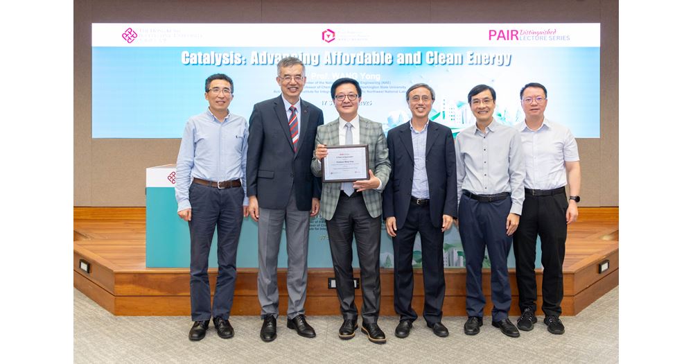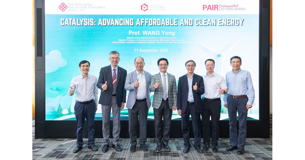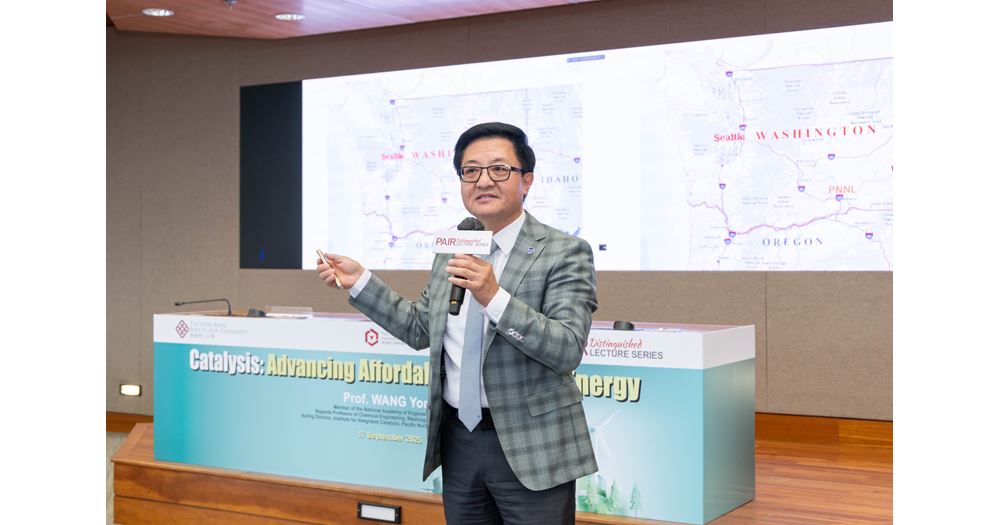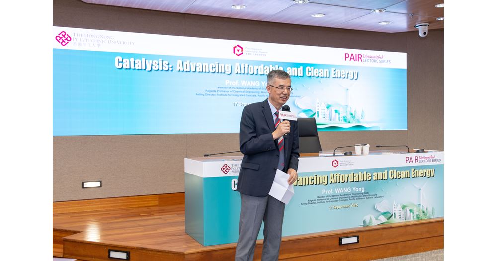 催化作用能加速化學反應,在生產更潔淨、更具經濟效益的燃料方面扮演關鍵角色。美國華盛頓州立大學王勇教授於2025年9月17日的理大高等研究院傑出學人講座中,以「催化作用:推動經濟實惠的清潔能源」為題,分享了先進催化技術在革新燃料生產及減排方面的潛力。是次講座吸引逾120位現場參加者,並有超過17,900名線上觀眾透過多個社交媒體平台同步收看。