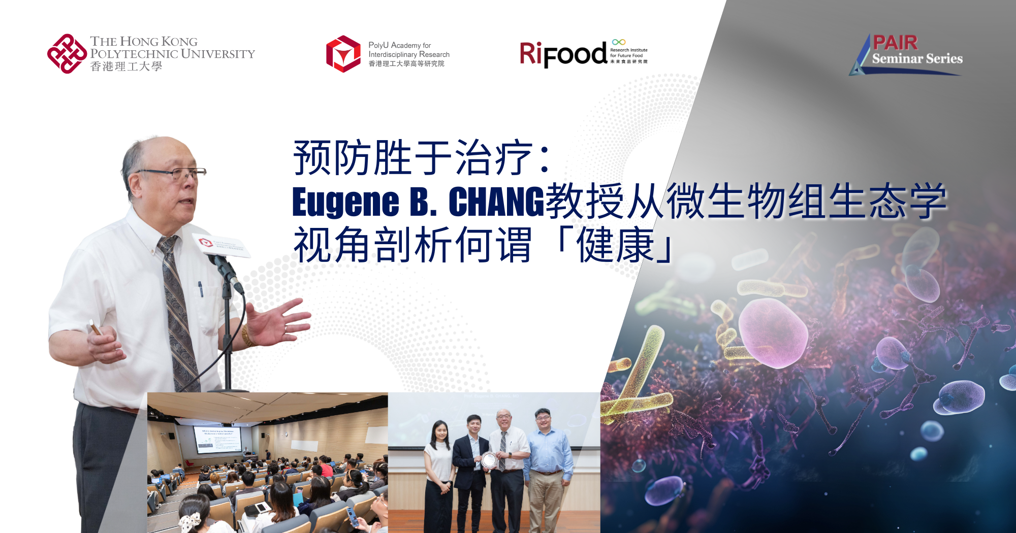 2026年3月30日,芝加哥大学 Martin Boyer 杰出教授 Eugene B. CHANG教授应邀莅临理大校园,主讲以「微生物医学:以生态与演化视角探究健康与疾病」为题的理大高等研究院讲座。是次讲座吸引了近100名研究人员、临床医护人员及学生参与,并有超过15,400名观众透过各社交媒体平台在线观看,共同探讨「肠道微生物群器官」这一新兴医学领域。