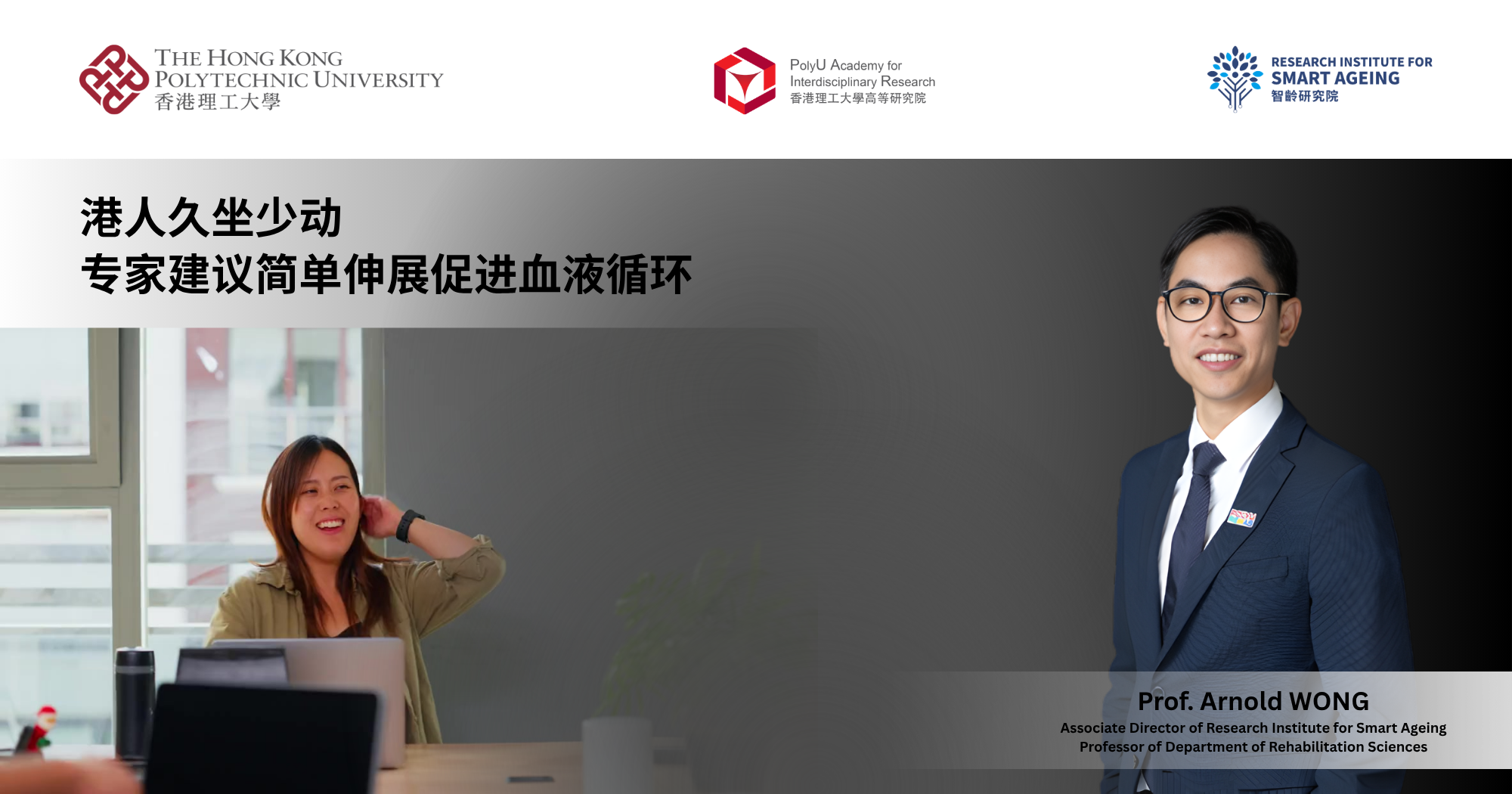 Prof. Arnold WONG, Associate Director of Research Institute for Smart Ageing (RISA) and Professor of Department of Rehabilitation Sciences, was recently interviewed on Viu TV programme “Medicine Online”, where he explained how simple stretching exercises can help improve blood circulation, thereby easing pain, enhancing mood and helping to prevent cognitive decline.