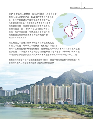 15%u6771%u6d8c%u65b0%u5e02%u93aeISSA %u662f%u985e%u4f3c%u7c89%u571f%u7684%u6750%u6599%uff0c%u5e36%u6709%u6c99%u72c0%u9846%u7c92%uff0c%u662f%u7528%u711a%u5316%u7210%u71c3%u71d2%u6c61%u6c34%u6c61%u6ce5%u7684%u526f%u7522%u54c1%u3002GGBS %u7684%u7279%u6027%u5247%u8207%u6c34%u6ce5%u76f8%u8fd1%uff0c%u662f%u751f%u7522%u92fc%u9435%u904e%u7a0b%u4e2d%u6b98%u7559%u5728%u9ad8%u7210%u4e2d%u7684%u526f%u7522%u54c1%u3002%u5169%u8005%u7684%u6210%u672c%u5747%u6975%u4f4e%uff0c%u4f46%u537b%u80fd%u964d%u4f4e%u9999%u6e2f%u6d77%u6d0b%u6c89%u7a4d%u7269%u6ce5%u6f3f%u7684%u542b%u6c34%u91cf%uff0c%u540c%u6642%u986f%u8457%u63d0%u5347%u6c89%u7a4d%u7269%u7684%u6297%u526a%u5f3a%u5ea6%u548c%u627f%u8f09%u529b%u3002%u7531%u65bc ISSA %u8207 GGBS %u80fd%u53d6%u4ee3%u90e8%u5206%u6c34%u6ce5%uff0c%u6e1b%u5c11%u6c34%u6ce5%u7528%u91cf%uff0c%u4e5f%u5c31%u662f%u6e1b%u5c11%u78b3%u6392%u653e%uff0c%u56e0%u6b64%u6bb7%u6559%u6388%u7684%u5d84%u65b0%u586b%u6d77%u6280%u8853%u6bd4%u50b3%u7d71%u65b9%u6848%u66f4%u74b0%u4fdd%uff0c%u66f4%u5207%u5408%u53ef%u6301%u7e8c%u767c%u5c55%u3002%u5718%u968a%u6700%u521d%u5148%u65bc%u9999%u6e2f%u6771%u6d8c%u65b0%u5e02%u93ae%u9032%u884c%u7d9c%u5408%u8edf%u571f%u6539%u826f%u6280%u8853%u7684%u5148%u5c0e%u5be6%u6e2c%uff0c%u7d50%u679c%u4ee4%u4eba%u975e%u5e38%u9f13%u821e%u3002%u4ed6%u5011%u8b49%u5be6%u4e86%u758f%u6d5a%u9999%u6e2f%u6d77%u6d0b%u6c89%u7a4d%u7269%u5b9c%u7528%u4f5c%u586b%u6d77%u7269%u6599%u4f7f%u7528%uff0c%u80fd%u964d%u4f4e%u903e%u4e5d%u6210%u586b%u6d77%u6210%u672c%uff0c%u540c%u6642%u52a0%u5feb%u586b%u6d77%u9032%u5ea6%u81f3%u5c11%u4e94%u500d%u3002%u672a%u4f86%u6b64%u6280%u8853%u5c07%u61c9%u7528%u65bc%u591a%u9805%u5927%u578b%u586b%u6d77%u5de5%u7a0b%uff0c%u5305%u62ec%u201c%u4e2d%u90e8%u6c34%u57df%u201d%u586b%u6d77%u5de5%u7a0b%u2500%u5728%u5927%u5dbc%u5c71%u9644%u8fd1%u7684%u5929%u7136%u5cf6%u5dbc%u4ea4%u6905%u6d32%u5468%u570d%uff0c%u5efa%u9020%u9762%u7a4d%u5408%u5171%u4e00%u5343%u516c%u9803%u7684%u4e09%u500b%u4eba%u5de5%u5cf6%u3002%u6bb7%u6559%u6388%u5229%u7528%u5275%u65b0%u79d1%u6280%uff0c%u4ee4%u586b%u6d77%u9020%u5730%u8b8a%u5f97%u6709%u6548%u7387%uff0c%u66f4%u5408%u4e4e%u7d93%u6fdf%u6548%u76ca%u548c%u53ef%u6301%u7e8c%u767c%u5c55%uff0c%u70ba%u9999%u6e2f%u548c%u5176%u4ed6%u4eba%u53e3%u7a20%u5bc6%u57ce%u5e02%u7684%u9032%u6b65%u8207%u7d93%u6fdf%u767c%u5c55%u4f5c%u51fa%u8ca2%u737b%u3002%u586b%u6d77%u9020%u5730 %u5805%u5982%u78d0%u77f3