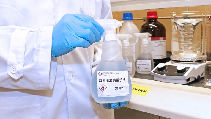 Outside campus, PolyU staff and students also show their care to the needy in the midst of the epidemic. While hand sanitizers were in short supply, Dr Joseph Yung, Associate Head of the Department of Applied Biology and Chemical Technology, led colleagues and students to produce hand sanitizers and distributed them to the elderly and the underprivileged through the Social Welfare Department.