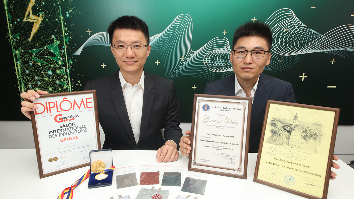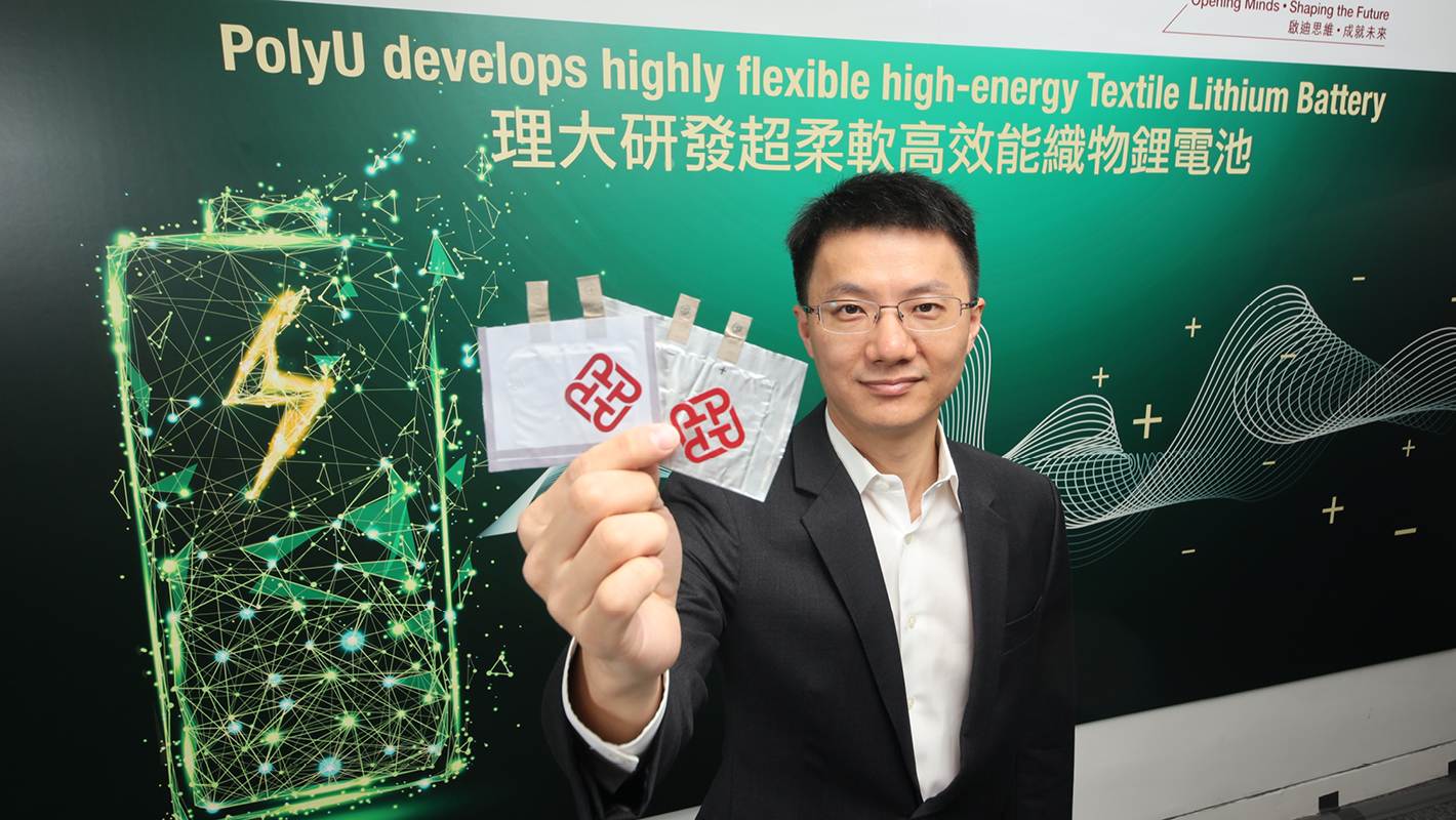 为提升弯曲锂电池在可穿戴仪器中的性能,纺织及服装学系郑子剑教授及团队研发出一种轻巧兼柔软度极佳的锂电池。它的厚度小於0.5 毫米,能量密度却高达逾450瓦时/公升,不但充电和放电速率快,电池寿命亦比传统锂电池较长。