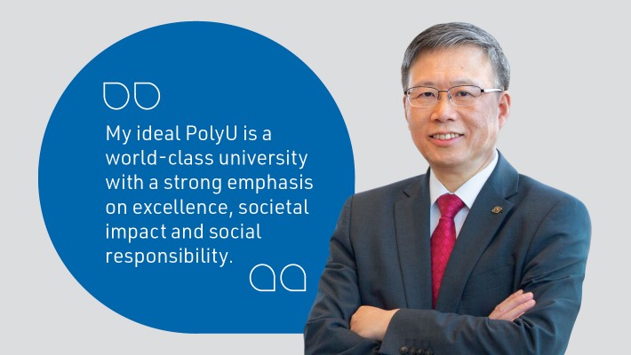 My ideal PolyU is a world-class university with a strong emphasis on societal impact. It is a university with a strong culture of excellence and social responsibility, offering a holistic education to students and undertaking world-class research. It is a place where interdisciplinary collaboration, innovation and entrepreneurship are highly valued. It enjoys a world-leading reputation in many of its disciplines, and fosters a caring and fulfilling environment where students and staff can realise their full potential.