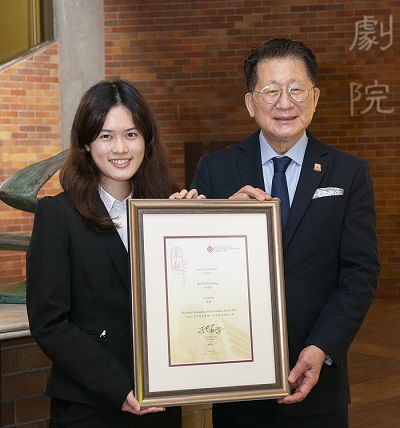 Onyx shares her joy of receiving the Most Outstanding PolyU Student Award with Professor Kaye Chon, Dean and Chair Professor, SHTM.