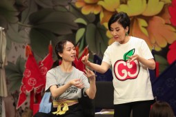 ![]() A student receiving guidance from Dr Liza Wang (right) on the art of Cantonese opera | ![]() Dr Chung King-fai (circled), Artist-in-Residence 2013/14, co-directed a performance of “Xiaojing Hutong” staged by the PolyU Theatre in 2017. |