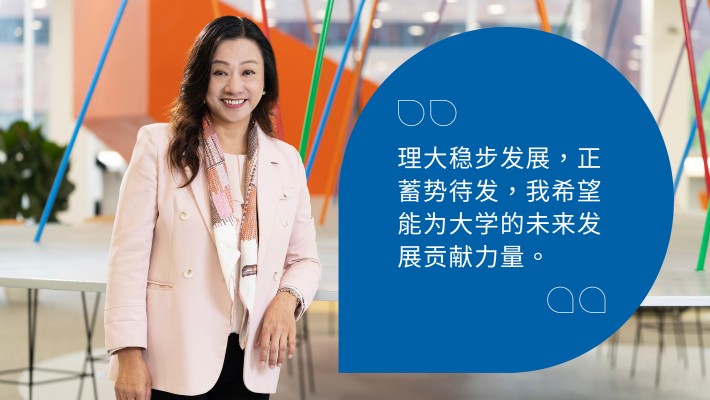 理大历史悠久、根基稳固,并与工商界建立了强大的联系。我希望能进一步巩固我们与各界友好的联系,让他们持续地了解和关注大学的发展,从而对理大投入更多的支持。我在理大工作了很长时间,对大学一直以来的发展较为了解,这对我向各界支持者阐述理大在教学和研究方面的成就,有很大的帮助。