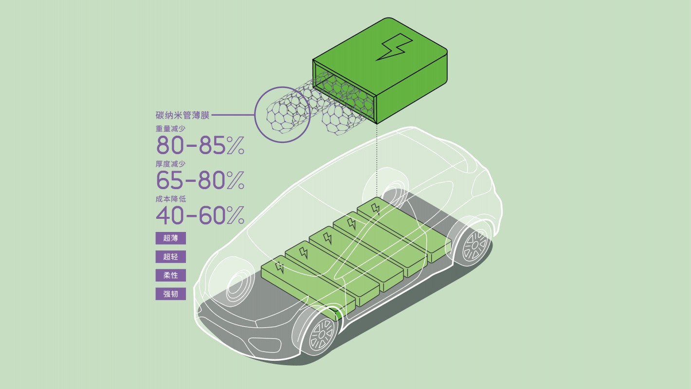 全球其他研究团队乃至部分企业也在开发类似的复合集流体技术。“不过,他们采用的是聚合物及聚合物薄膜,而我们使用的是碳纳米管,材料特性截然不同。我们的电池可适用于多种场景,且充电后续航里程更长,这一优势使其尤其适合电动汽车领域。” 郑子剑教授介绍道。