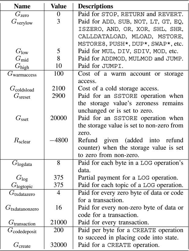 Table 1. An example gas fee schedule