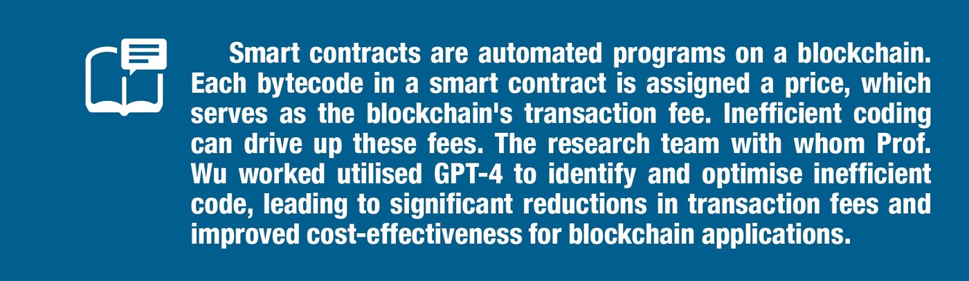 To address the above challenges, Prof. Xiao Ming WU, Associate Professor of the Department of Data Science and Artificial Intelligence at The Hong Kong Polytechnic University, worked with a research team led by Prof. Daniel Xiaopu LUO to introduce a pioneering methodology: the integration of Large Language Models (LLMs), specifically GPT-4, into the pipeline for discovering gas-wasting code smells in Ethereum smart contracts. This marks the first large-scale, automated effort to systematically identify such inefficiencies, resulting in the largest and most novel set of gas-wasting code smells reported to date. The results of their study have been published in IEEE Transactions on Software Engineering [1].