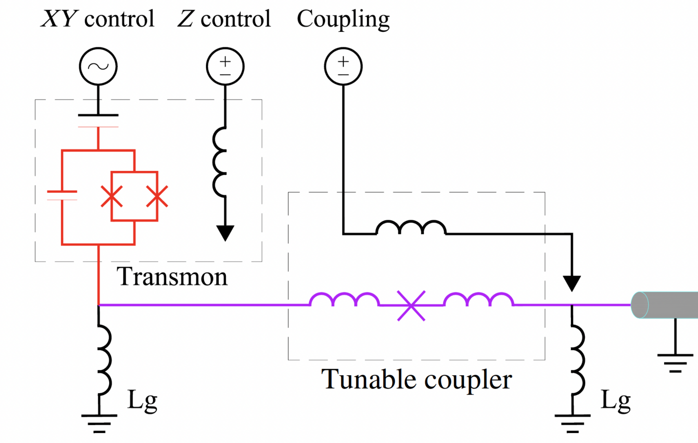 Figure 1. Schematic of a microwave flying-qubit emitter implemented by a transmon qubit. The emitter is inductively coupled to a transmission-line waveguide through a tunable gmon coupler. The transmon qubit is frequency tunable by the Z control, and its state can be coherently manipulated by the XY microwave driving field.