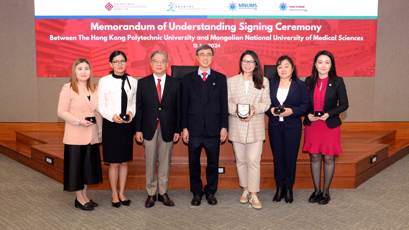 The Department of Rehabilitation Sciences of PolyU and the Department of Physical and Occupational Therapy of the School of Nursing of the Mongolian National University of Medical Sciences (MNUMS) signed a Memorandum of Understanding (MoU) on 15 January, to strengthen international academic collaboration and exchanges of both parties, signifying an important step in contributing to the Nation’s Belt and Road Initiative.