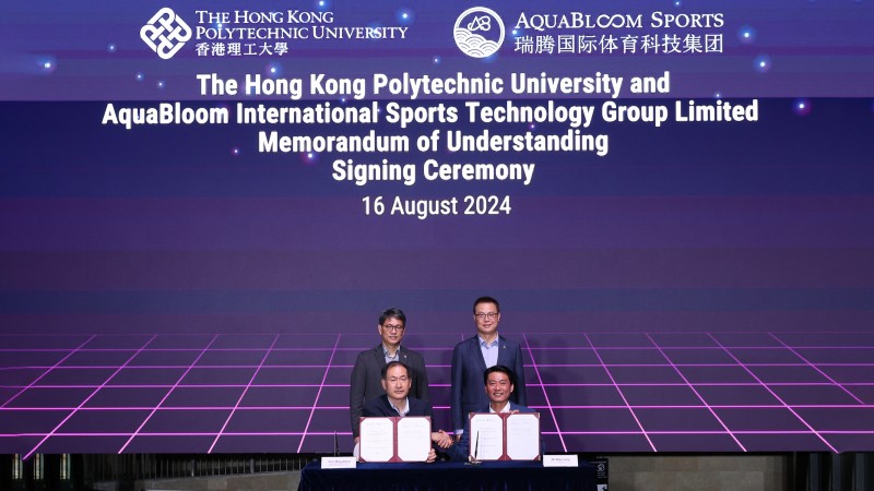 In a separate development, PolyU and AquaBloom International Sports Technology Group Limited (ABSG) signed an MoU to establish the “Sports Technology Talent and Industry Development Centre”. This Centre aspires to cultivate top industry talents and accelerate sports research and industry development in the Greater Bay Area through education programmes, academic exchanges, and joint research projects. It will connect PolyU researchers with local sports organisations, forming an expert team to engage in impactful interdisciplinary research and collaborate on projects eligible for local and national funding.