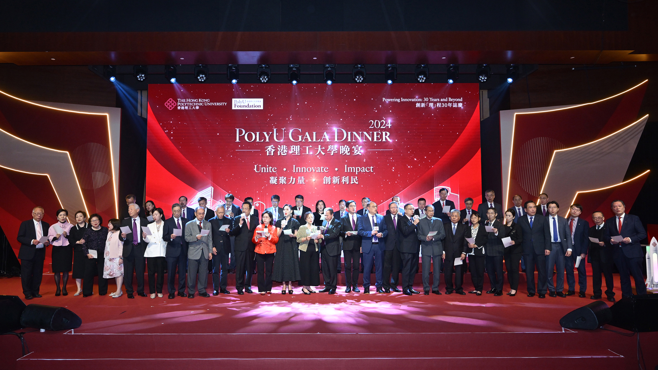 Held at the Hong Kong Convention Exhibition Centre, the event was graced by HKSAR Government officials, PolyU leaders and members of the PolyU community, celebrating the University’s 30 years of achieving university status.