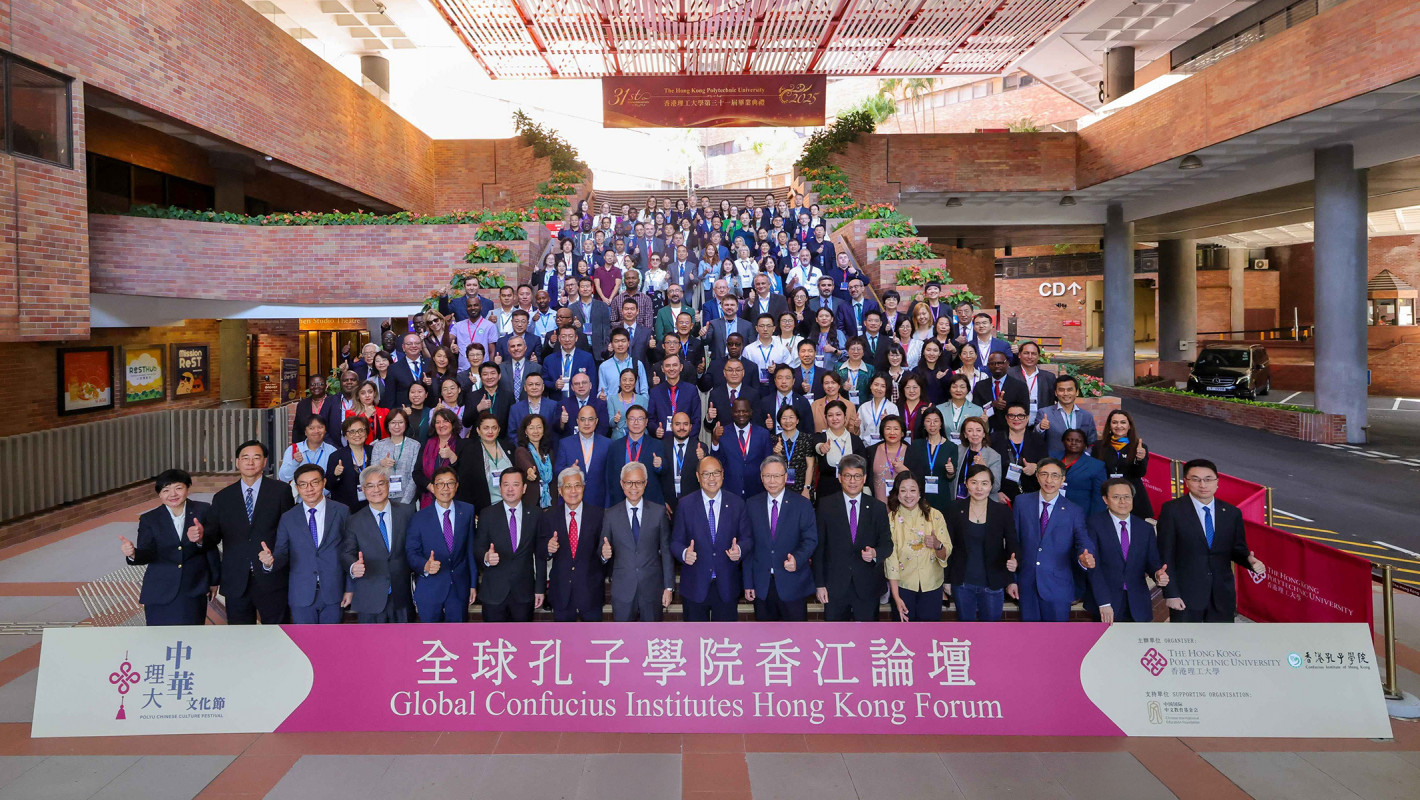 A landmark event of Confucius Institutes worldwide, the first-ever “Global Confucius Institutes Hong Kong Forum” was held on the PolyU campus, gathering 150 delegates from 79 Confucius Institutes across 69 countries and regions, along with PolyU senior management, staff, and students. The event, also a flagship event of the PolyU Chinese Culture Festival, sought to explore innovative pathways for international Chinese language education in the era of artificial intelligence (AI) and to advance collaborative global development of Confucius Institutes.