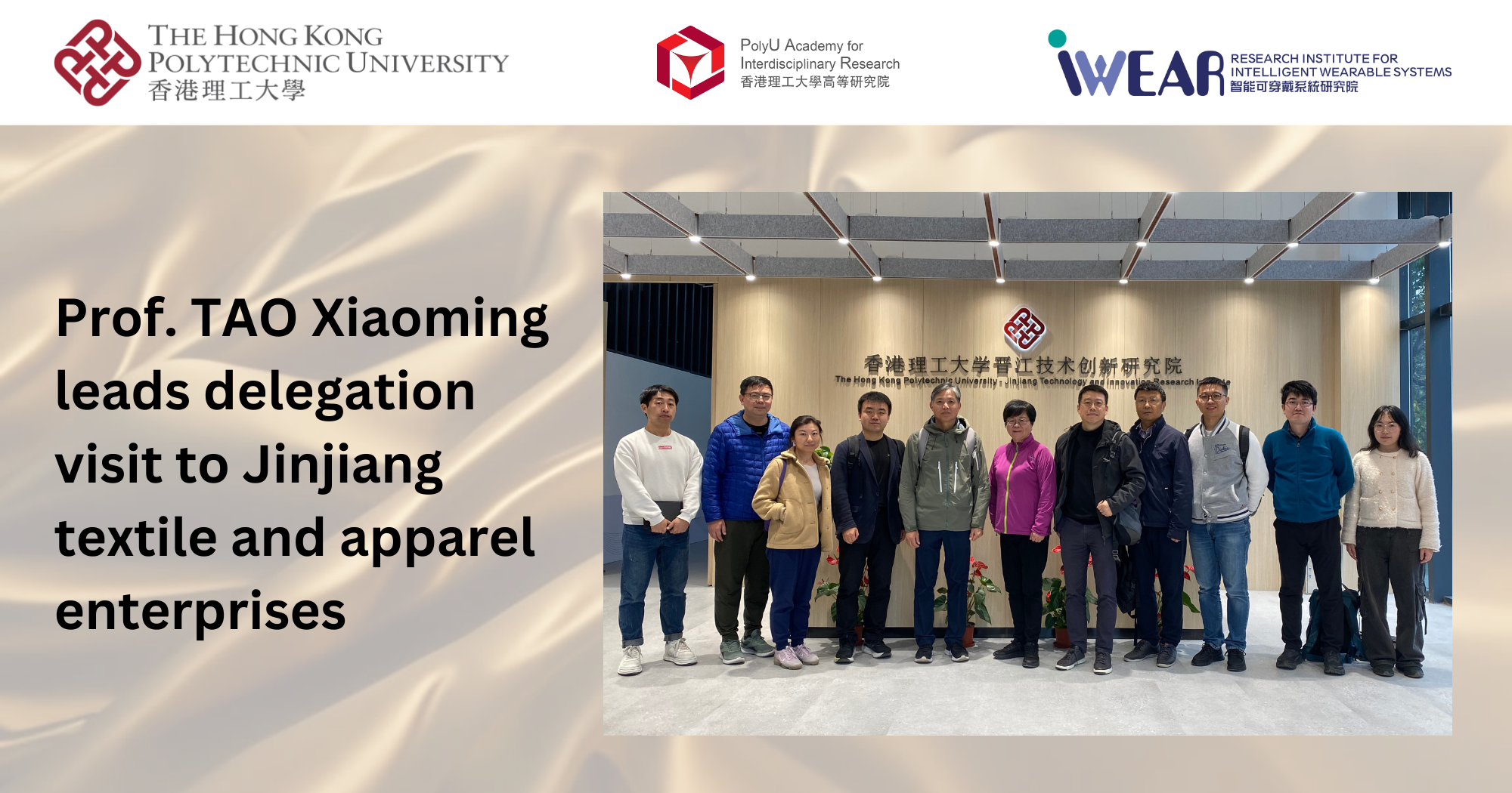 Prof. TAO Xiaoming, Director of the Research Institute for Intelligent Wearable Systems (RI-IWEAR), led a delegation from PolyU to visit textile, apparel and sportswear enterprises in Jinjiang, China on 21 March 2024. The visit aims to explore collaborations with the industry for advancing translation of research outputs and promoting industry-university-research collaboration.