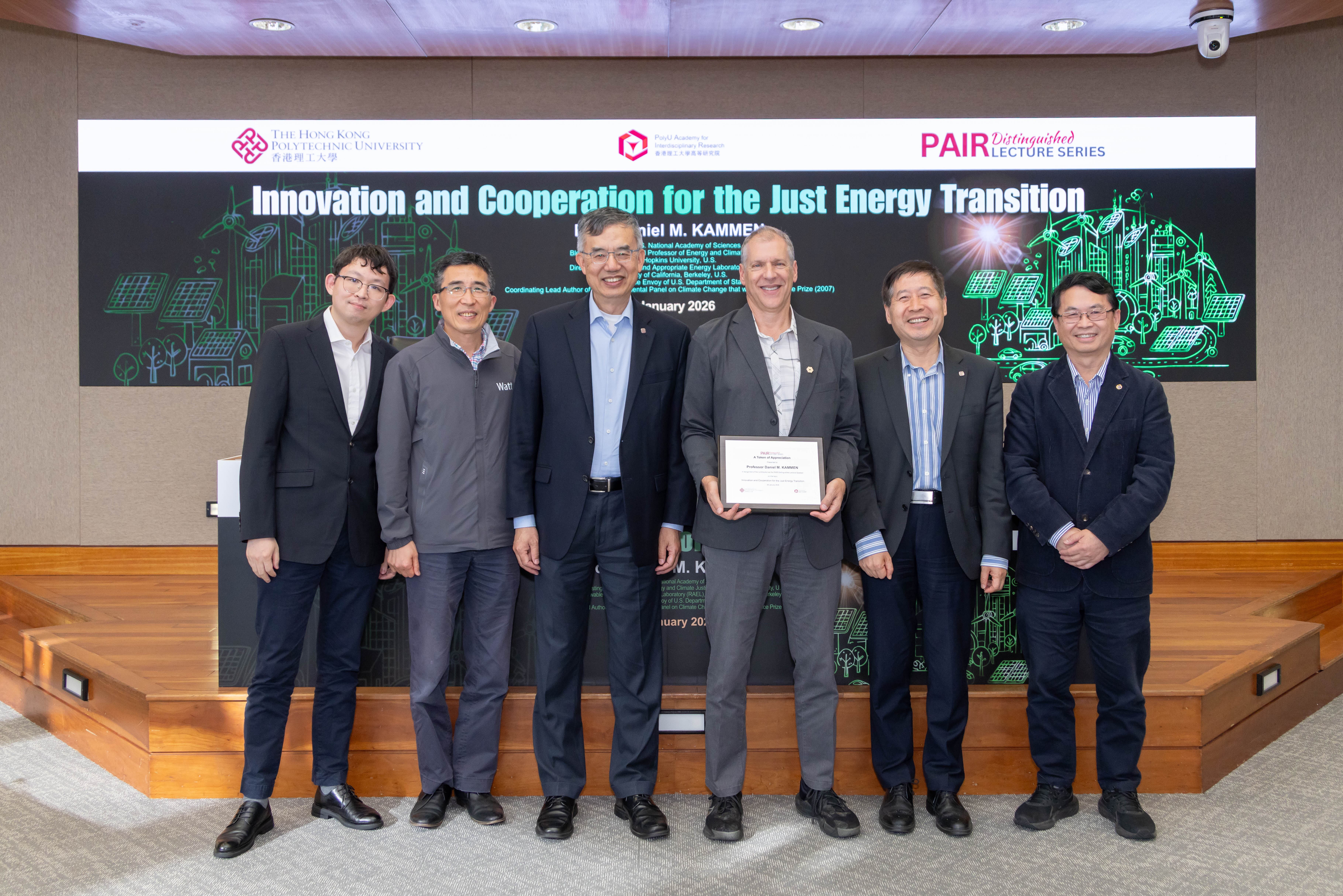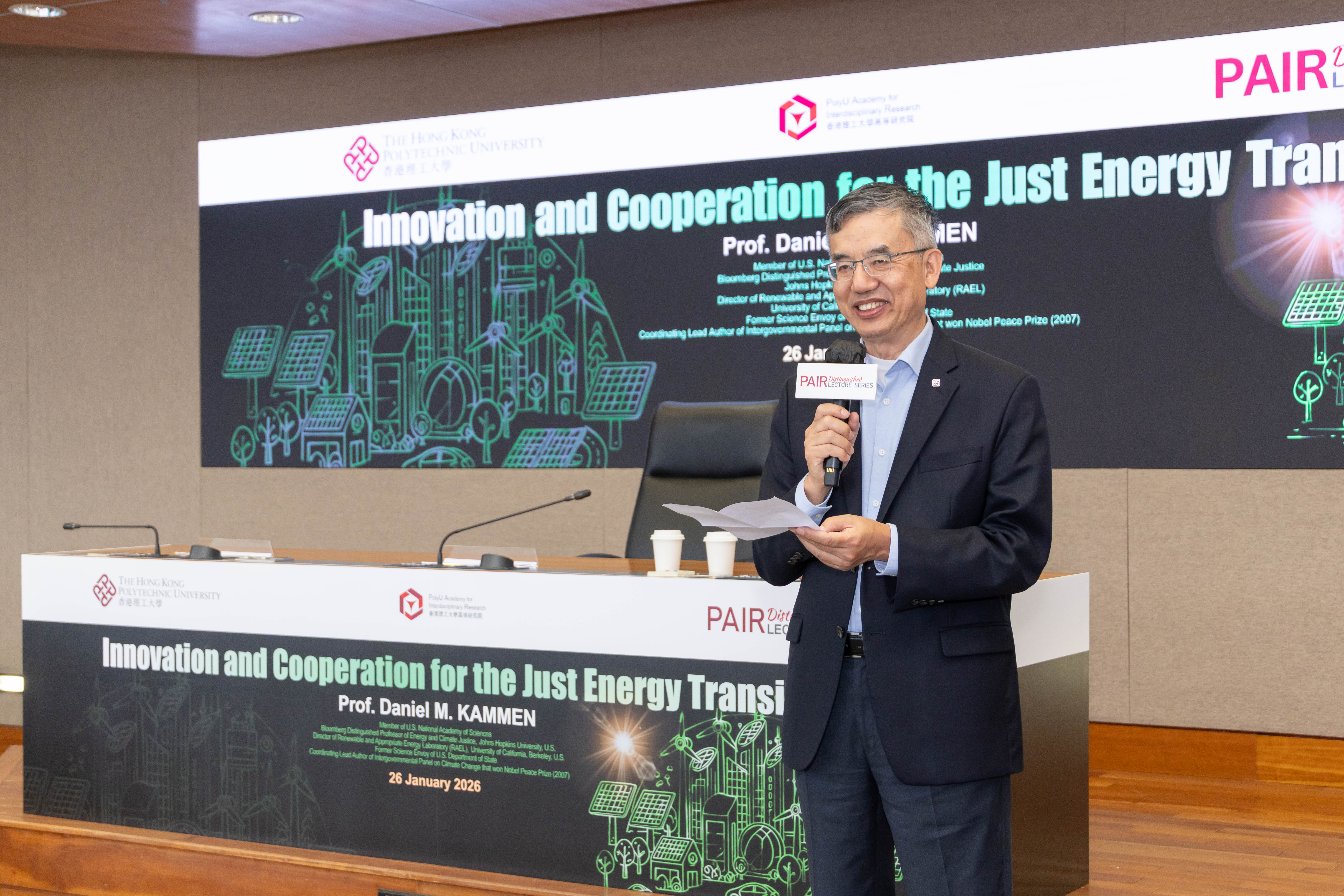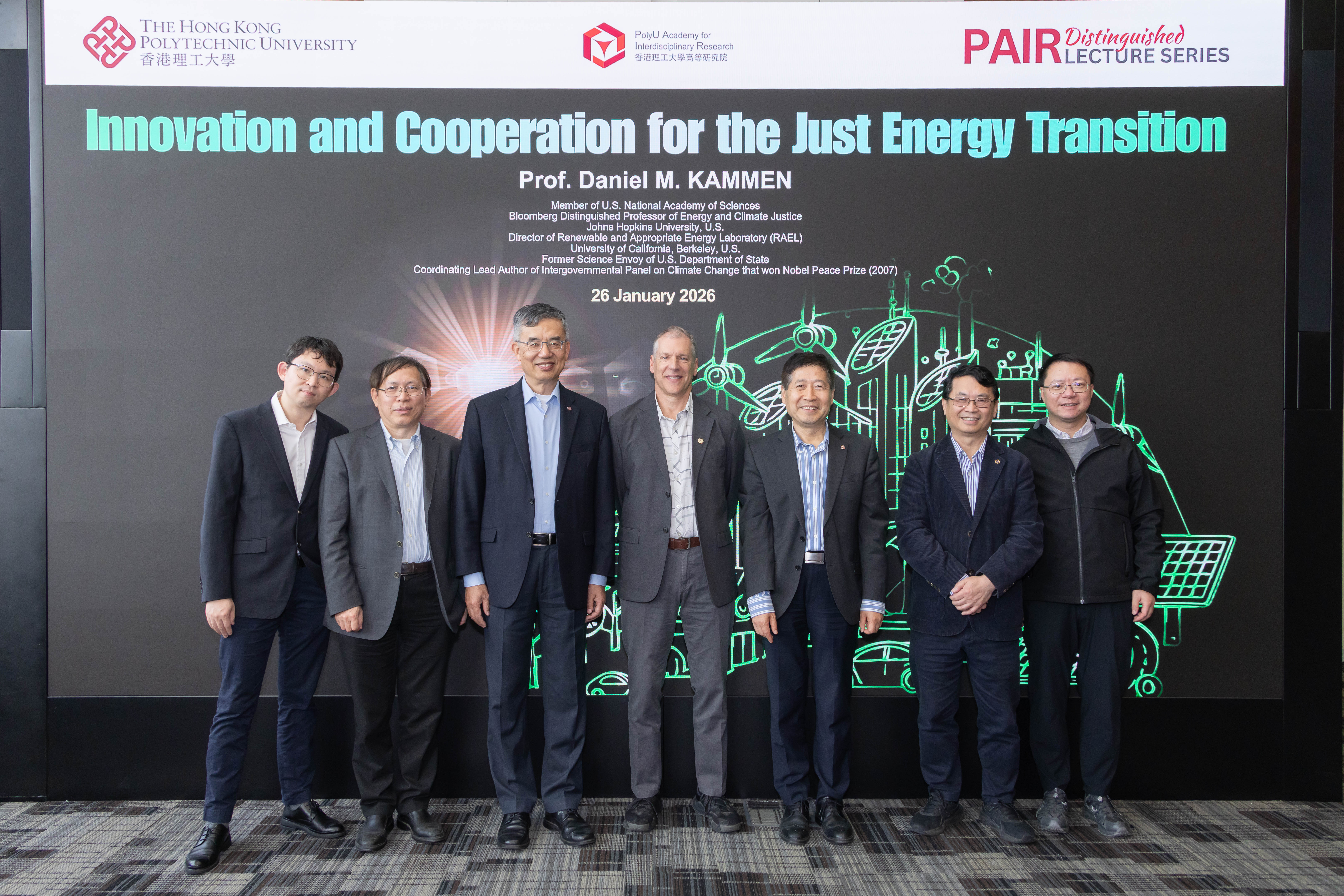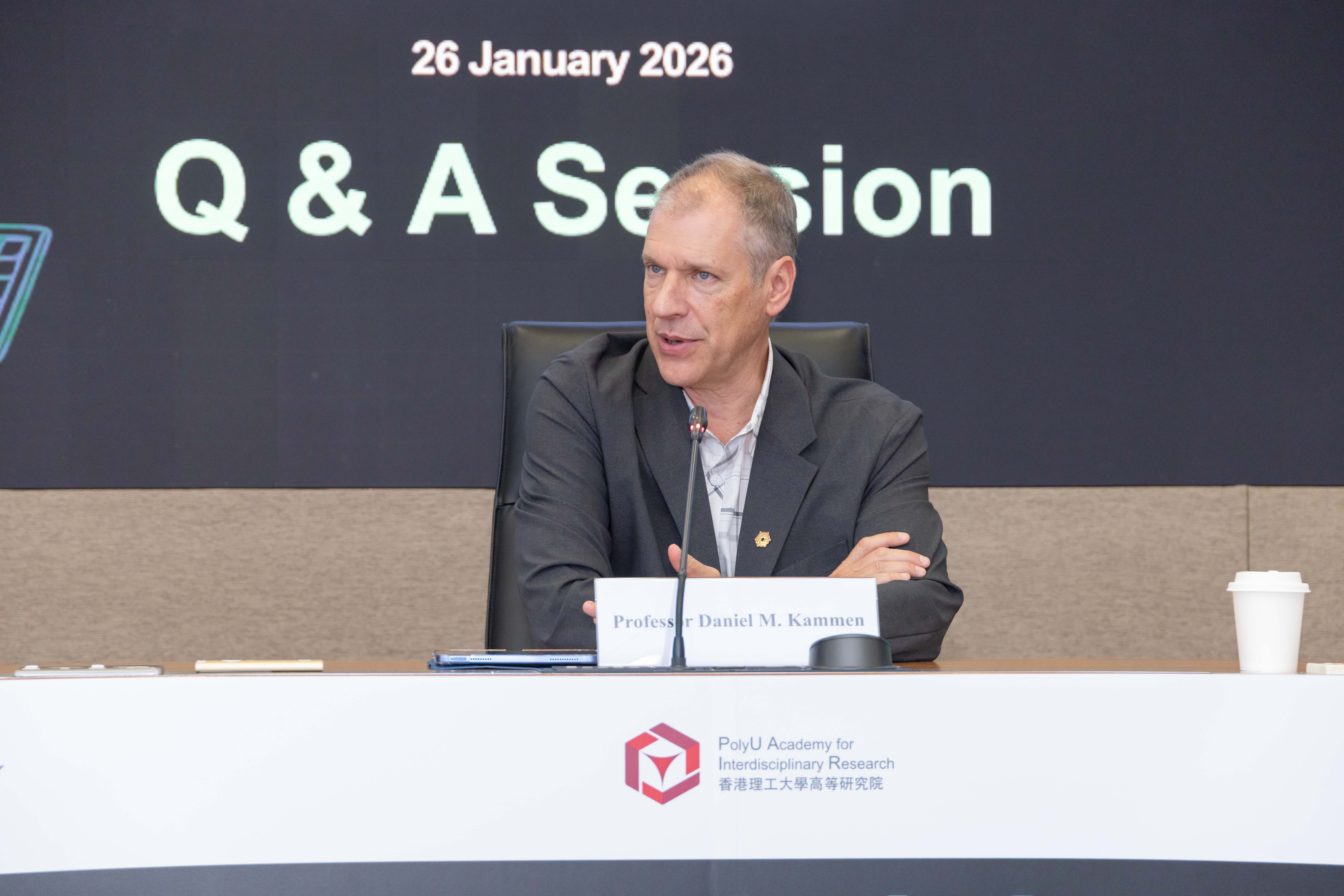 來自美國約翰霍普金斯大學的Daniel M. Kammen教授於2026年1月26日蒞臨理大校園,主講「以創新與合作推動公義能源轉型」為題的理大高等研究院傑出學人講座。是次活動吸引了逾百名現場觀眾參與,並有超過16,200名網上觀眾透過各大社交媒體平台同步收看。