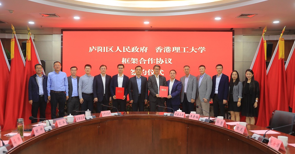 簽約儀式於 10 月 25 日在合肥市舉行。理大副校長(研究及創新)趙汝恒教授及合肥市廬陽區區政府副區長時坤先生代表雙方簽署協議,並由理大協理副校長(內地研究拓展)董澄教授、理大土地測量及地理資訊學系主任陳武教授、理大國家軌道交通電氣化與自動化工程技術研究中心(香港分中心)主任倪一清教授,以及合肥市廬陽區區委書記高强先生、合肥市廬陽區區委辦主任朱華軍先生、合肥市廬陽區廬陽經濟開發區管委會主任沈兵先生見證。