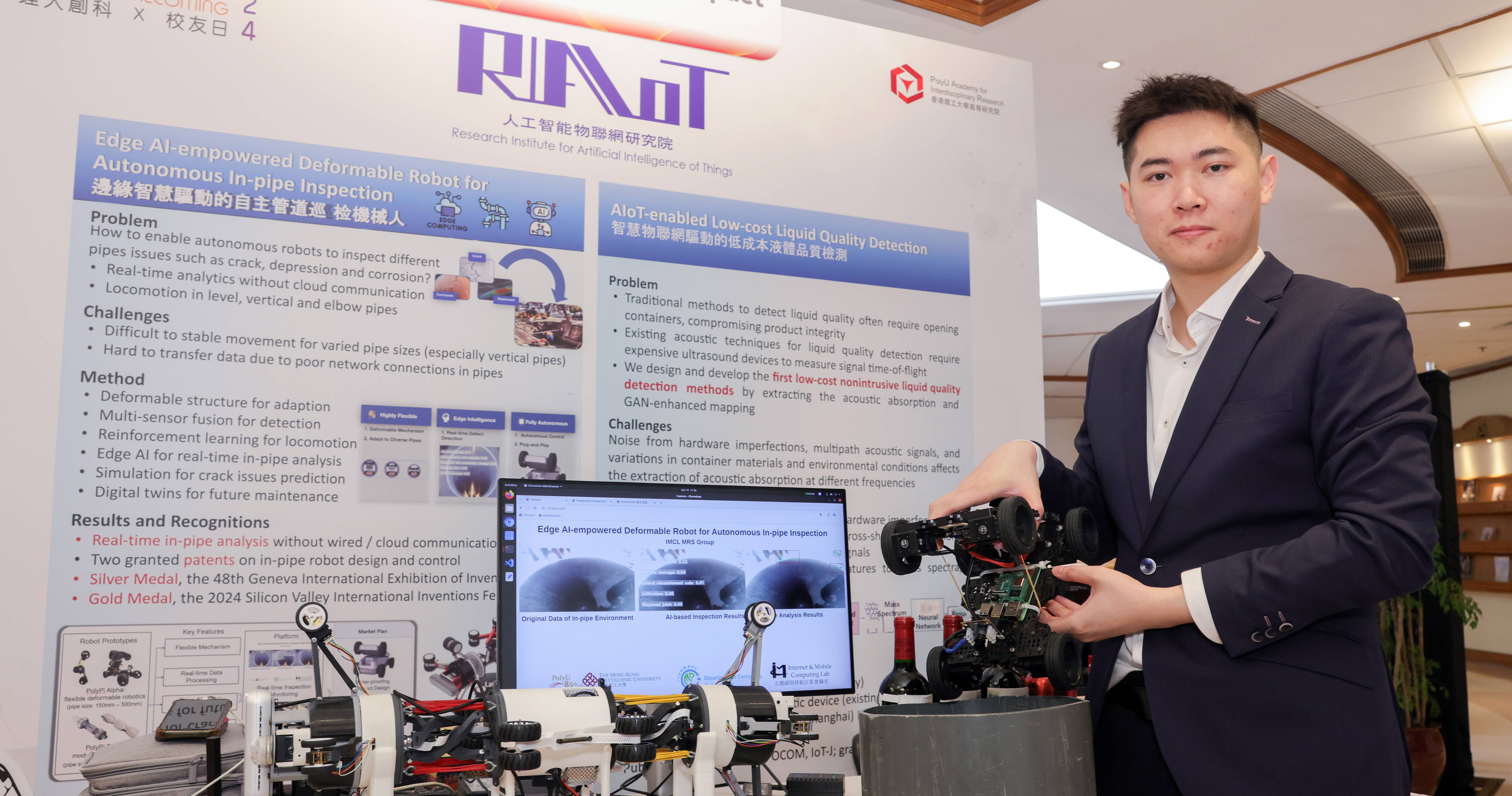 PolyU Research Institute for Artificial Intelligence of Things showcased a real-time pipeline defect detection robot. |