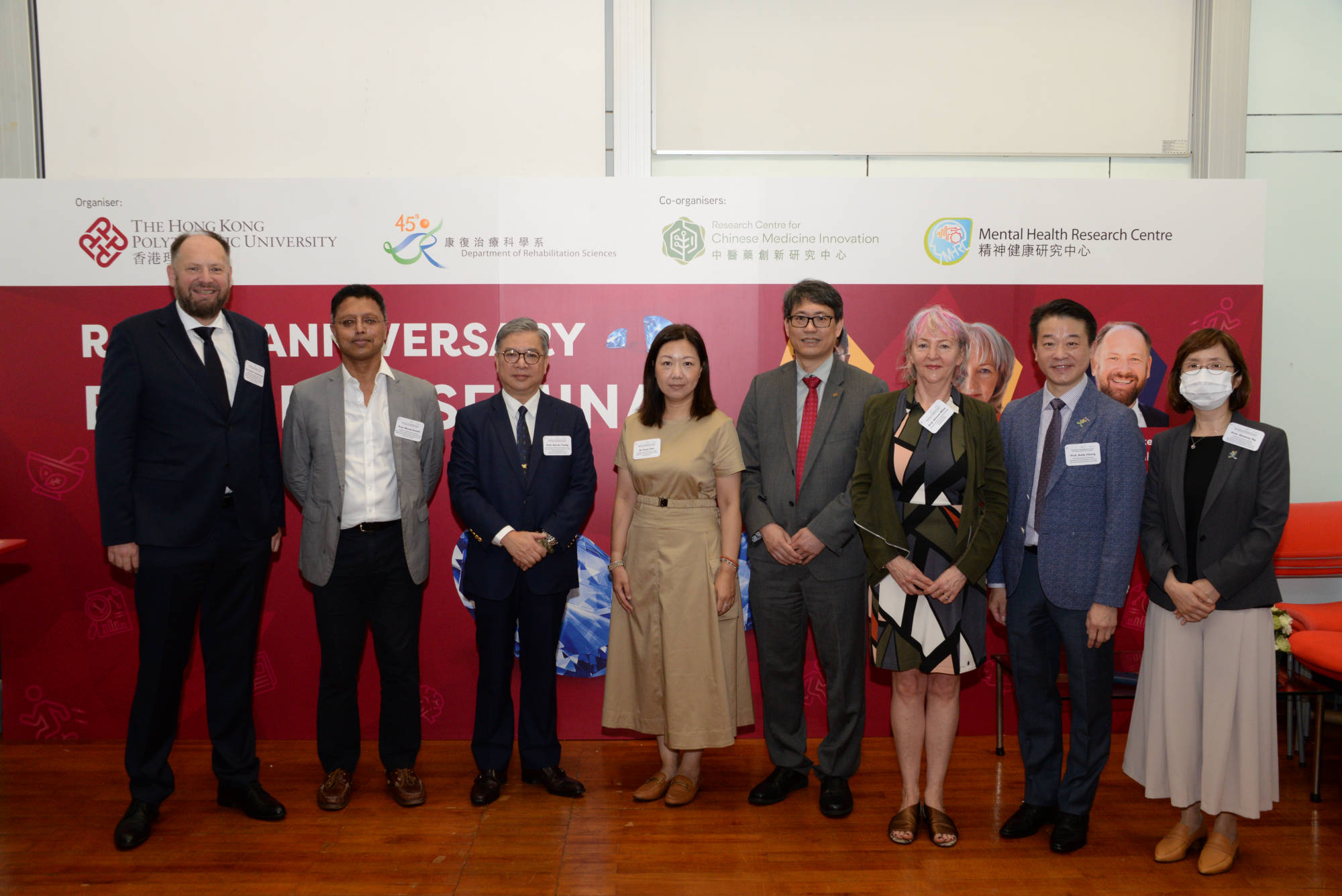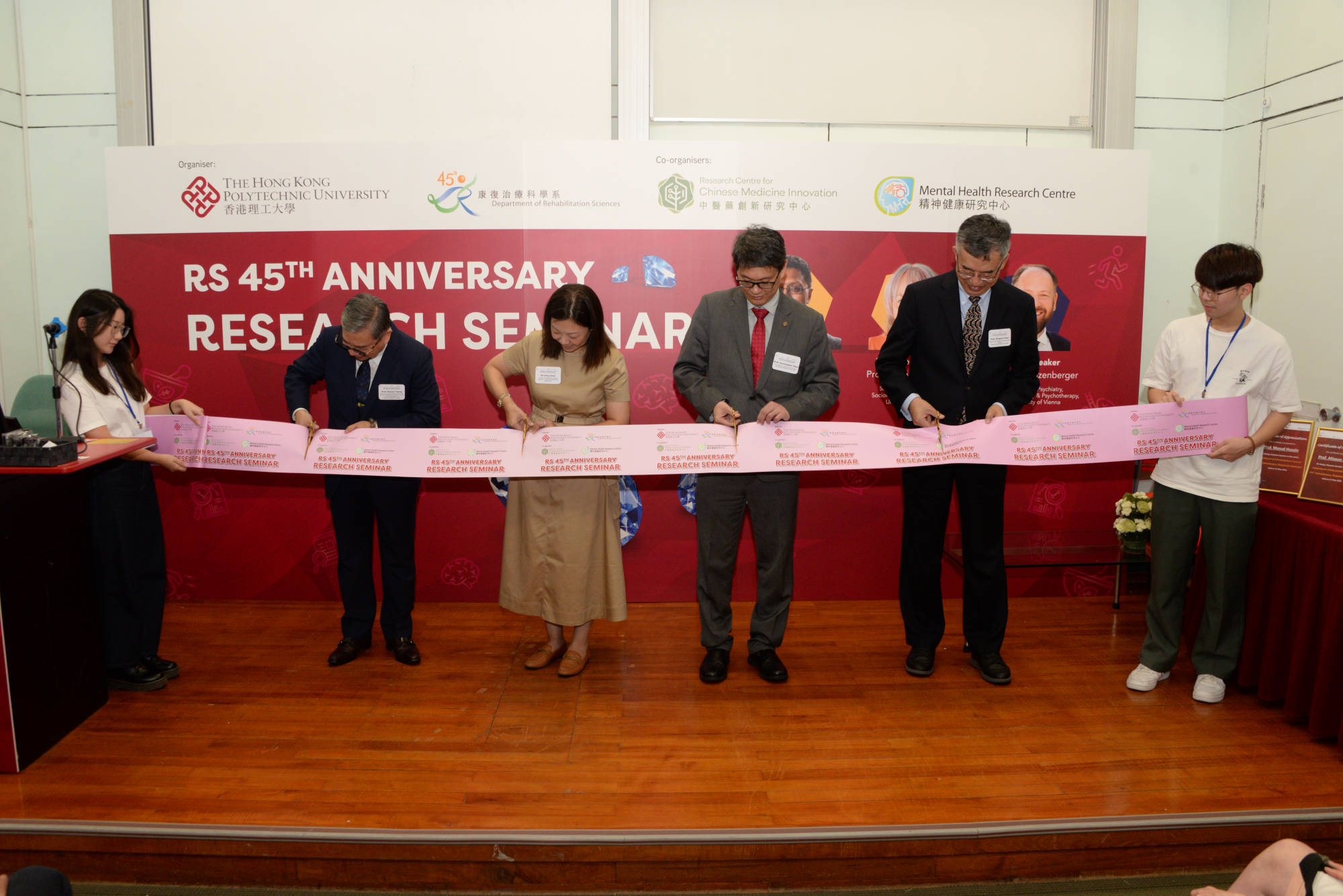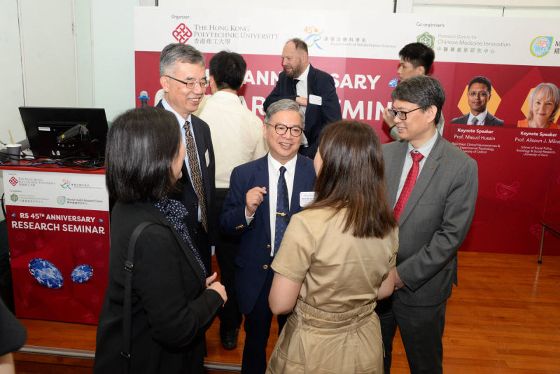 The RS 45th Anniversary Research Seminar was successfully held at The Hong Kong Polytechnic University (PolyU) on 27 May 2023. As one of the celebratory events of the RS 45th anniversary, this seminar was organised by Department of Rehabilitation Sciences (RS) in collaboration with Mental Health Research Centre (MHRC) and Research Centre for Chinese Medicine Innovation (RCMI).