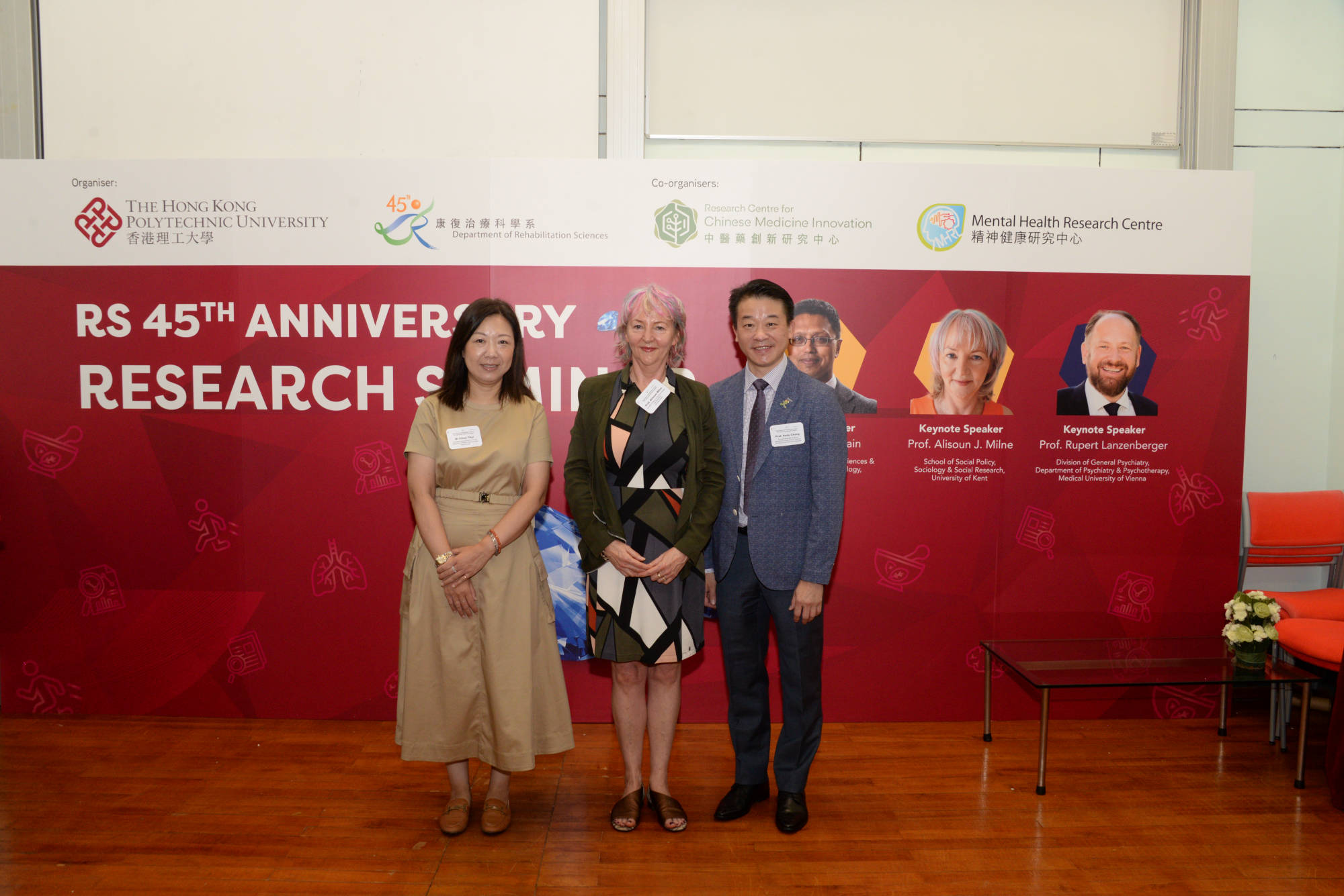 The RS 45th Anniversary Research Seminar was successfully held at The Hong Kong Polytechnic University (PolyU) on 27 May 2023. As one of the celebratory events of the RS 45th anniversary, this seminar was organised by Department of Rehabilitation Sciences (RS) in collaboration with Mental Health Research Centre (MHRC) and Research Centre for Chinese Medicine Innovation (RCMI).