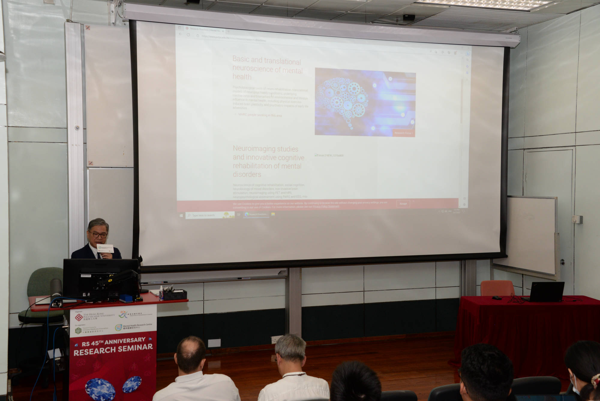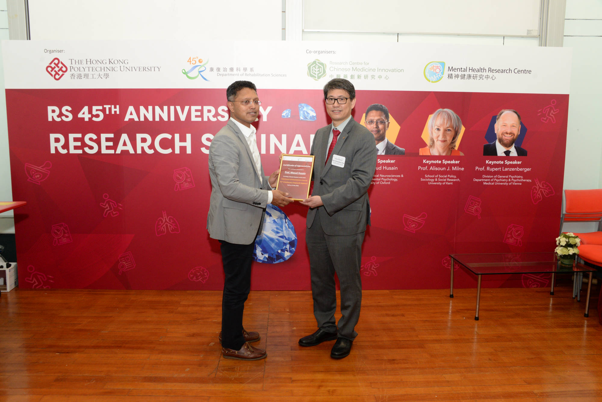Three distinguished keynote speakers had been invited to deliver lectures, they are Prof. Masud Husain (Professor of Neurology & Cognitive Neuroscience, Wellcome Trust Principal Fellow, Nuffield Department of Clinical Neurosciences, University of Oxford), Prof. Alisoun J. Milne (Professor Emeritus of Social Gerontology and Social Work, University of Kent) and Prof. Rupert Lanzenberger (Professor in Clinical Neurosciences Section Head: NEUROIMAGING LABS (NIL) Division of General Psychiatry, Department of Psychiatry and Psychotherapy, Medical University of Vienna). The seminar was also graced by esteemed guests including Dr Cissy Choi (Assistant Commissioner for Primary Healthcare 1, Primary Healthcare Office Health Bureau), Prof. Christopher Chao (Vice President – Research and Innovation, PolyU) and Prof. Qingyan Chen (Director of PolyU Academy for Interdisciplinary Research, PolyU) .
