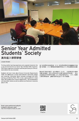 a new environment for our Senior Year Admitted (SYA) freshmen, 融入新環境,SYA 項目在新學期前特別為 SYA 學生組織迎新活動
