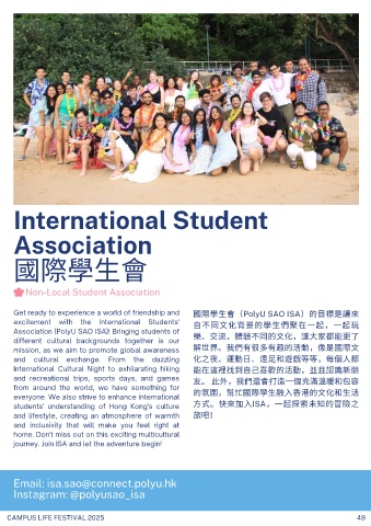 國 際 學 ⽣ 會 (PolyU SAO ISA ) 的 ⽬ 標 是 讓 來